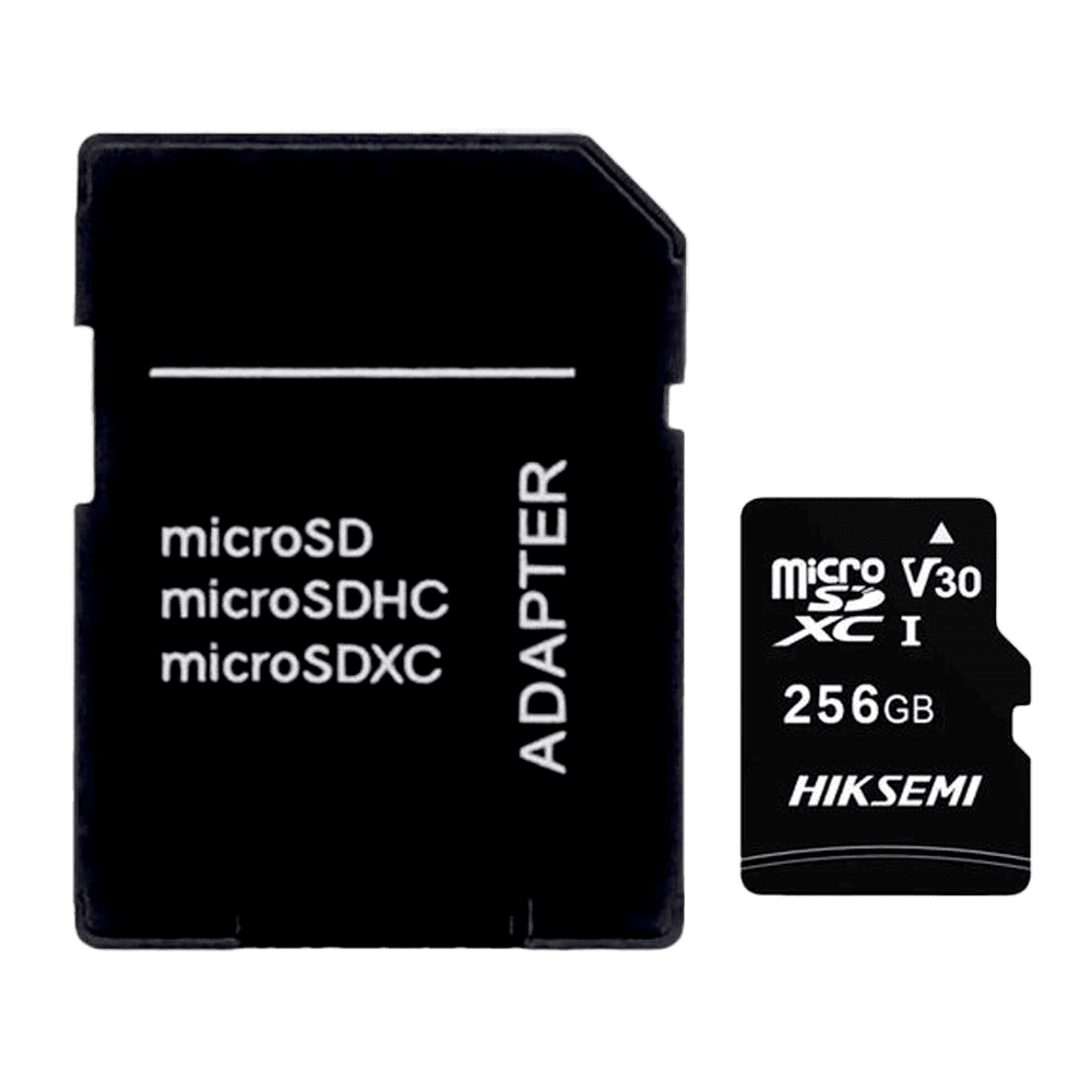 Cartão microSD com adaptador Hikvision – Capacidade 256 GB – Classe 10 | Velocidade R/W: 92/50 MB/s – Ciclos E/P: até 200 – Câmaras Home, Smartphones, Tablets