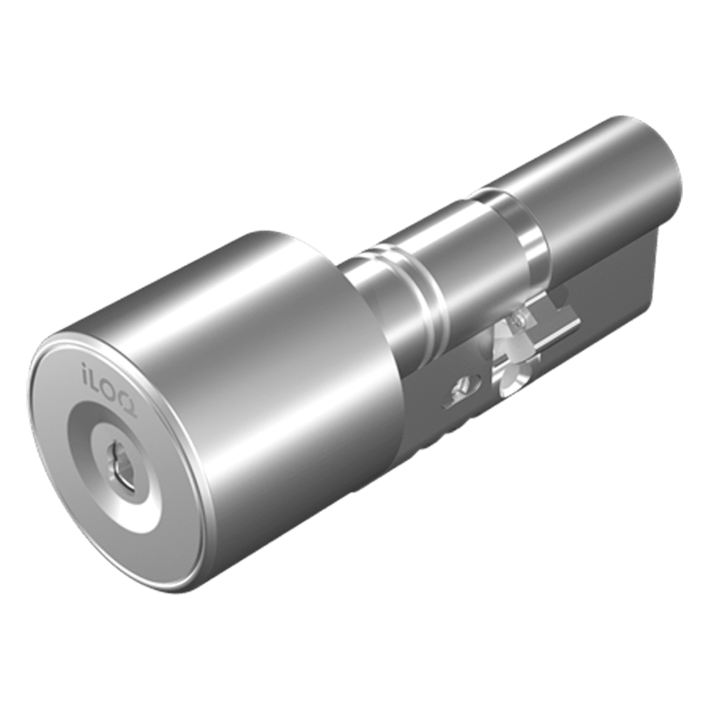Cilindro inteligente S5 – Abertura com chave física – Não necessita de bateria (alimentado com chave) – Dimensões 30 (interior) x 30 (exterior) mm – Comprimento ajustável com ILOQ-S5-EXTENSION-x – Exterior IP55 | Parte interna inerte