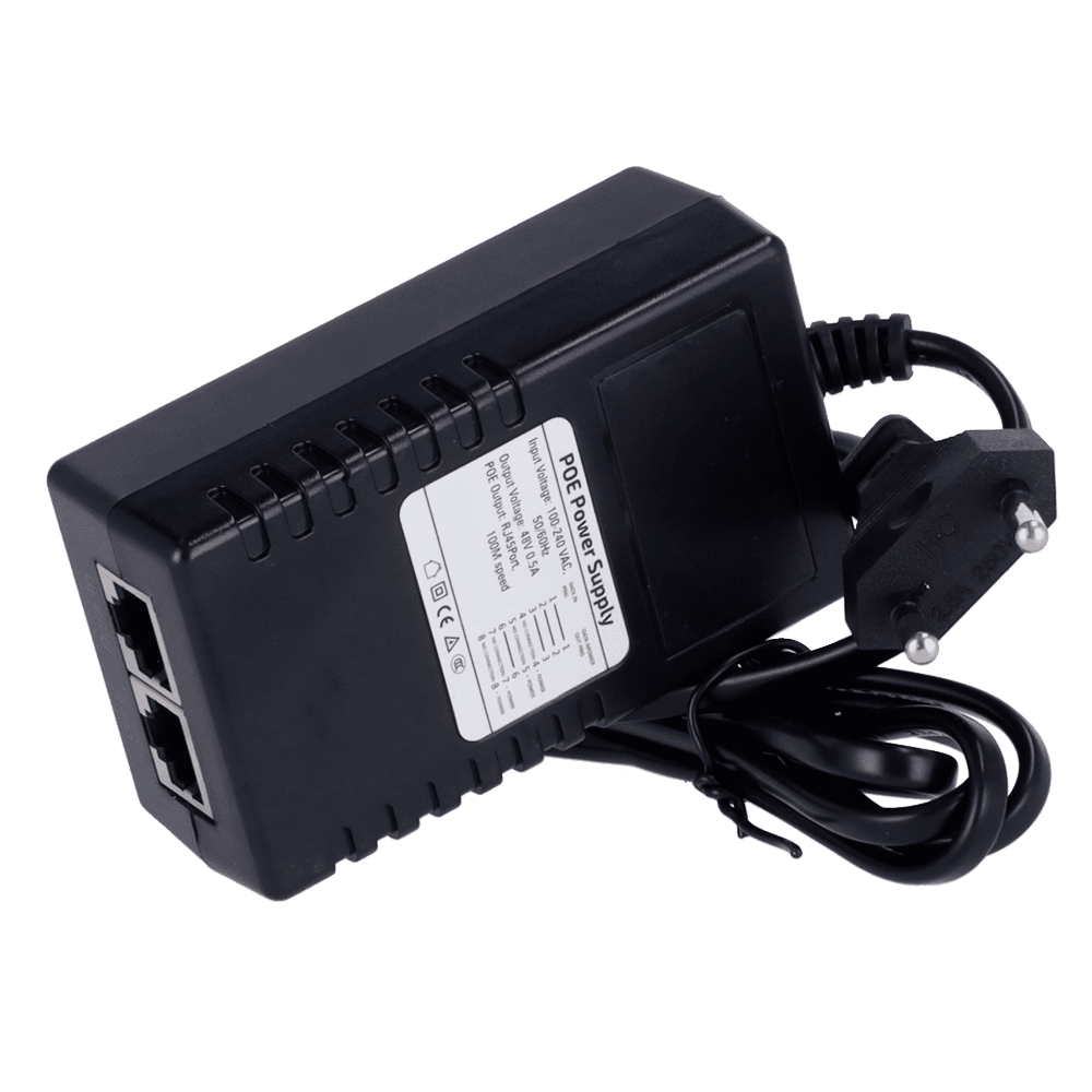 Injetor PoE passivo – Entrada/Saída RJ45 10/100 Mbps – Potência 15 W – Distância máxima 100 m – Velocidade 100M – Estabilizado e protegido
