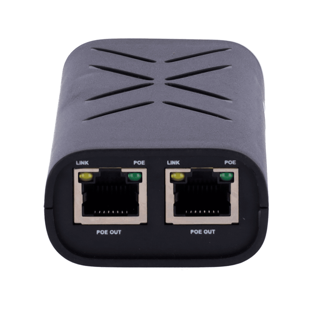 Injector duplo PoE – Entrada RJ45 10/100/1000 Mbps – Potência total 60 W – Distância máxima 100 m – PoE/PoE+ IEEE802.3af/at – Estabilizado e protegido