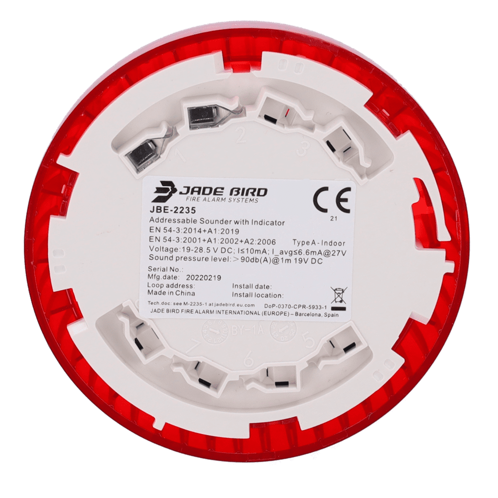 Sirene analógica Jade Bird – Alta potência de saída 91 dB(A) @ 1m – Alimentação elétrica através do laço – Não inclui base – Instalação em interiores – Certificado EN 54-3