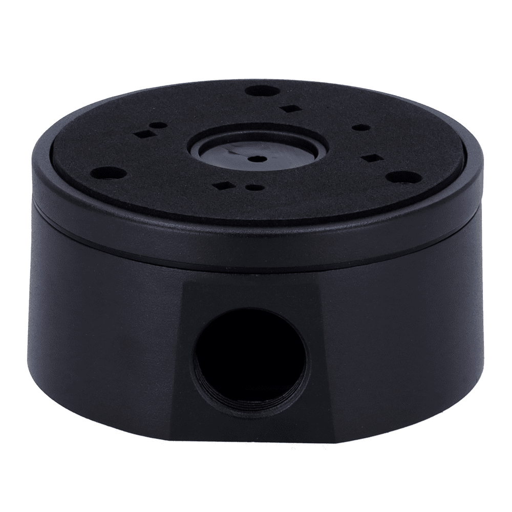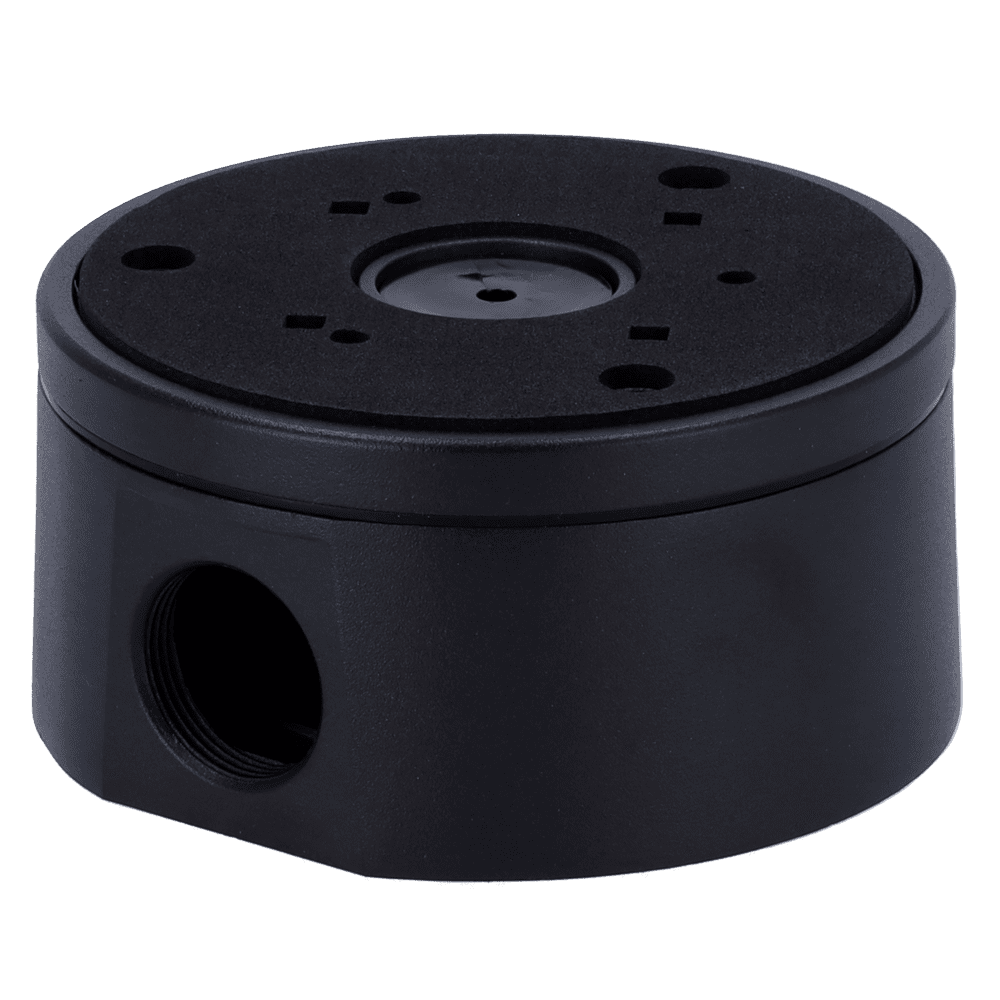 Caixa de conexões – Para câmaras Bullet, Domo e Turret – Apto para uso exterior – Instalação em tecto ou parede – Incluindo bucim – Cor preta 118 Ø × 59 (P) mm