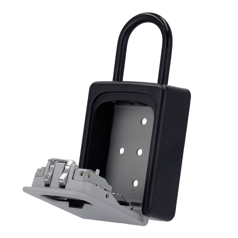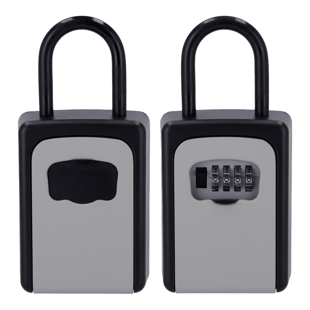 Caixa de segurança com gancho para chaves – Abertura com código de 4 dígitos – Instalação na parede ou no gancho – Medidas: 200 x 90 x 40 mm – Fabricado em liga de zinco e aço – Solução para moradias vazias e aluguer
