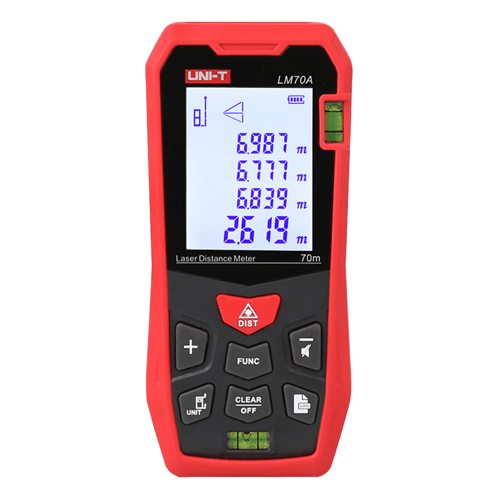 Medidor láser de distância – Faixa até 70 m com precisão milimétrica – Medição de comprimento, área, volume – Design ergonómico e confortável – Armazenamento de até 99 conjuntos de dados – Contém nivelador de bolhas