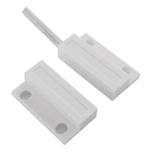 Contacto magnético – Apto para instalação em madeira – Tecnologia Reed – Sistema de conexão por 2 fios – Resistência a choques mecânicos e elétricos – Tamanho reduzido