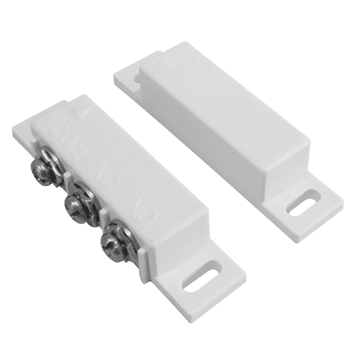 Contacto magnético – Apto para instalação em madeira – Tecnologia Reed – Sistema de ligação de terminais NA/NF – Resistência a choques mecânicos e elétricos