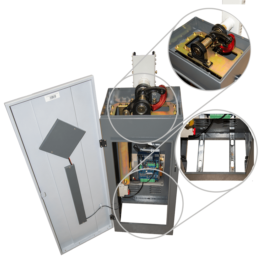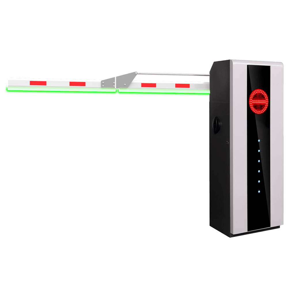 Barreira de estacionamento de alto desempenho – Braço angular em 90º (3 m) – Abertura à direita | 10.000.000 ciclos – Indicadores LED | Modo de emergência – Possibilidade de bateria de backup – Apta para Exterior IP54