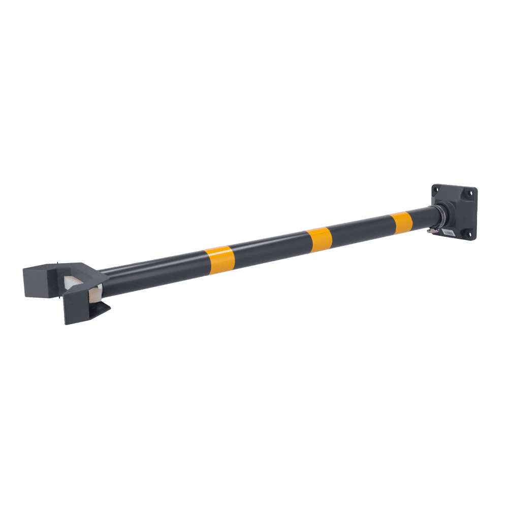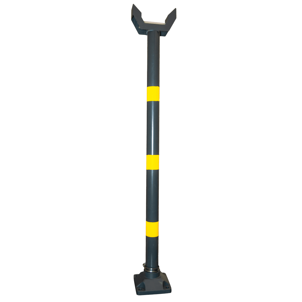 Suporte vertical para braço de barreira – Compatível com barreiras de estacionamento – Necessário em barreiras de estacionamento de 6 metros – Altura ajustável: 78 ~ 98 cm – Cor cinzenta com faixas refletoras