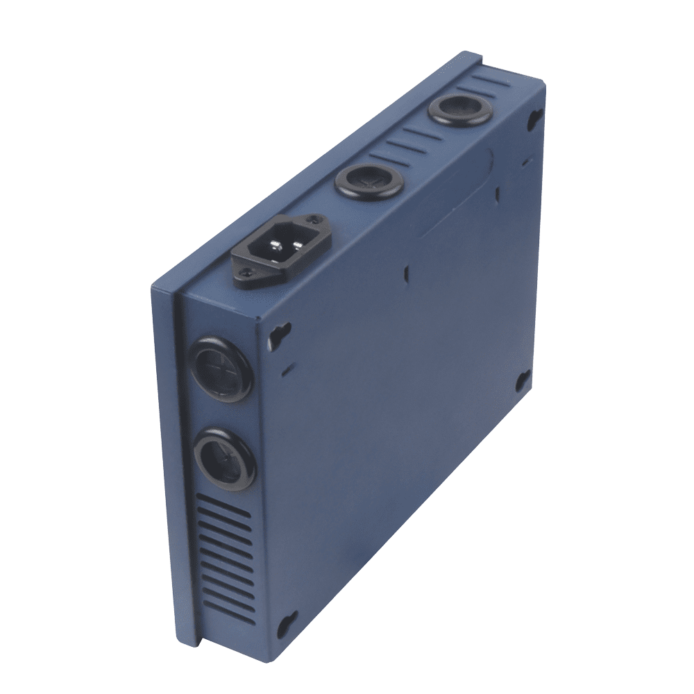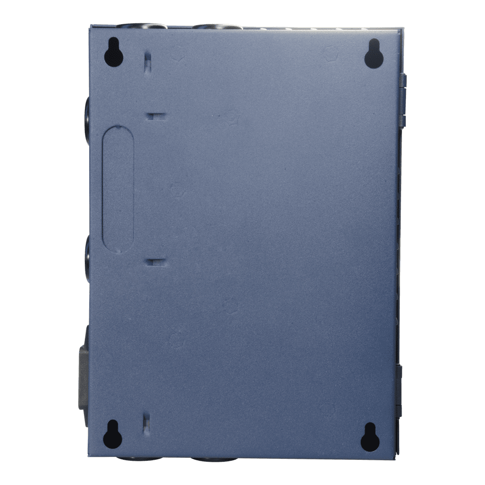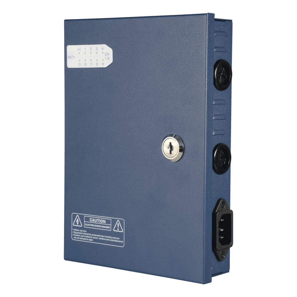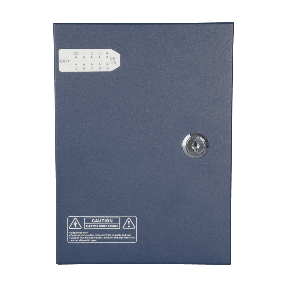 Caixa de distribuição de energia fina – 1 Entrada AC 220 V 5OHz – 9 saídas por par de cobre – Proteção por fusível rearmável – Tensão de saída 12 V / 120 W – Carcaça metálica