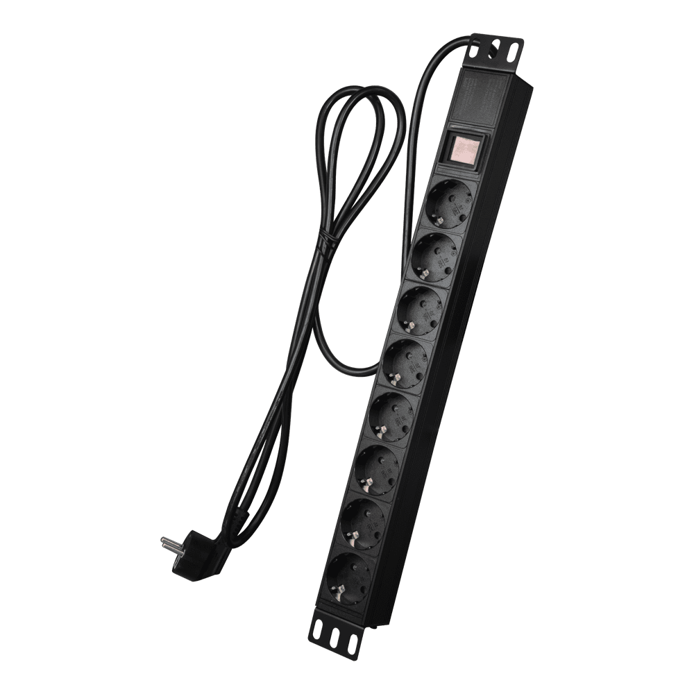 Tomada de alimentação – Formato em bastidor 1U – 8 saídas até 250VAC / 16 A máx. – Interruptor ligar/desligar – Cabo de 2m – Cor preto