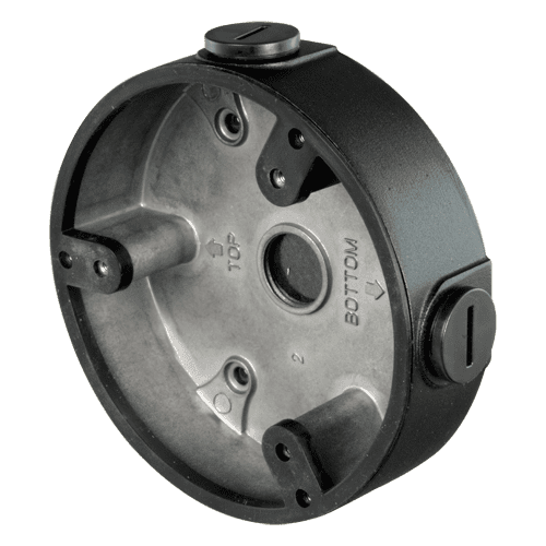 Caixa de conexões – Para câmaras dome – Apto para uso exterior – Instalação em tecto ou parede – Passador de cabos – Cor preta 34 (A) x 122 (Ø) mm