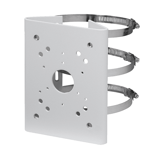 Suporte para mastros/postes – Para câmaras domo motorizadas – Intervalo diâmetro 103~127 mm – Apto para uso no exterior – Cor branca 170 (A) x 130.4 (L) x 45 (P) mm – Passador de cabos