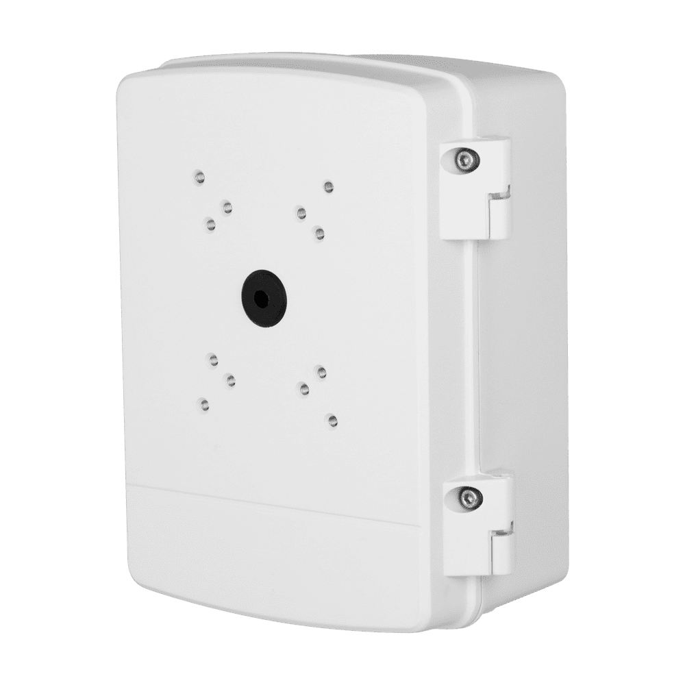 Caixa de conexões – Para câmaras domo motorizadas – Apto para uso exterior IP66 – Fabricado em liga de alumínio e SECC – 297.2 (Al) x 248 (Lg) x 130.7 (Fd) mm – Passa-Cabos | Branco