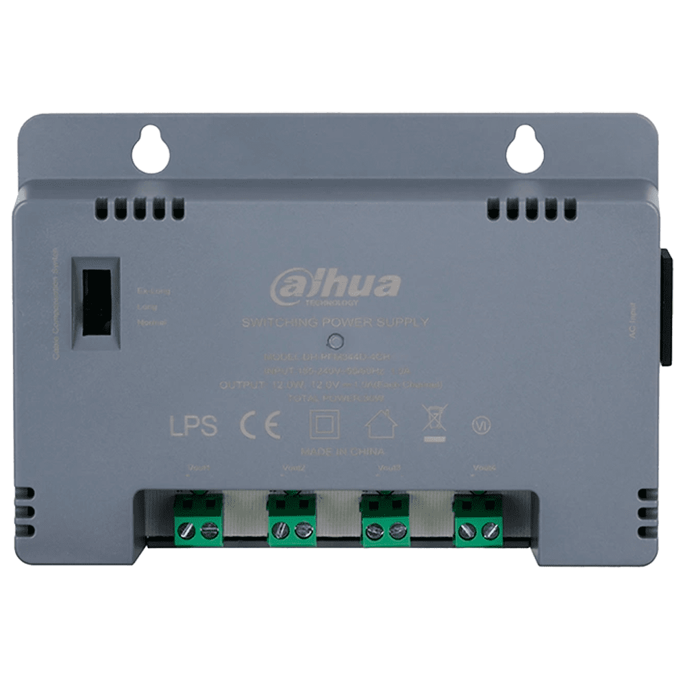 Fonte de alimentação comutada – Entrada AC 185-240V – 50/60Hz 1.5A – Potência total 30W – 4 saídas – Tensão de saída ajustável a 3 níveis – Saída DC 12 V / 12 W