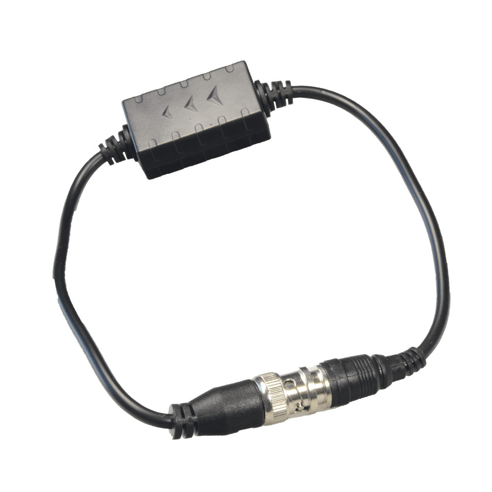 Isolador de fonte de alimentação – Otimizado para vídeos HDCVI – Instalação sobre cabo coaxial – Cabo 400 mm de cumprimento – Elemento passivo – Resposta em frequência 0-65MHz