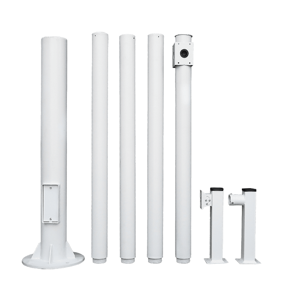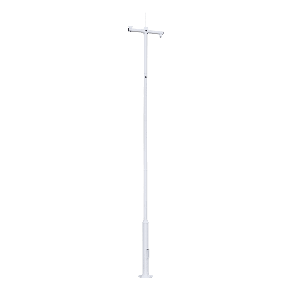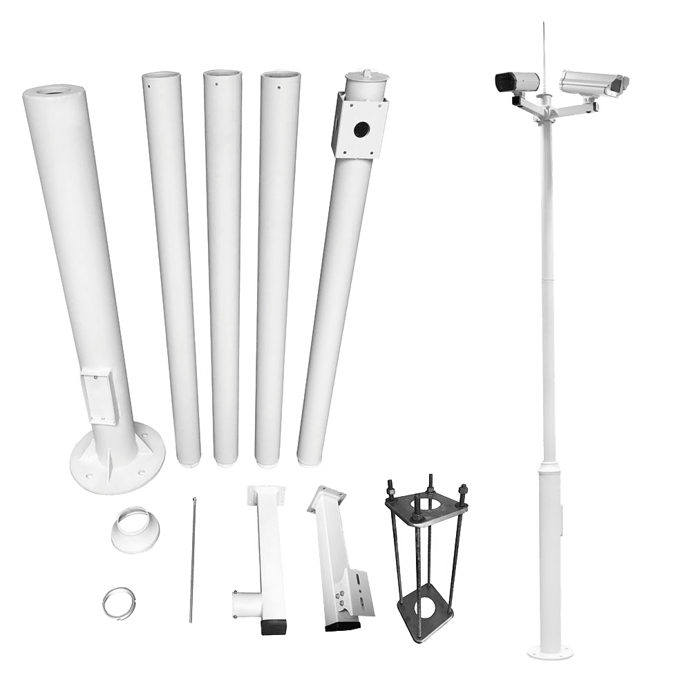 Poste de CCTV – 6 metros de altura – Fabricado em aço galvanizado – 5 peças de 1,2 metros que constituem o poste – Suportes para câmaras PTZ, suportes para câmaras Bullet e suportes para para-raios – Fornecido desmontado IP65.