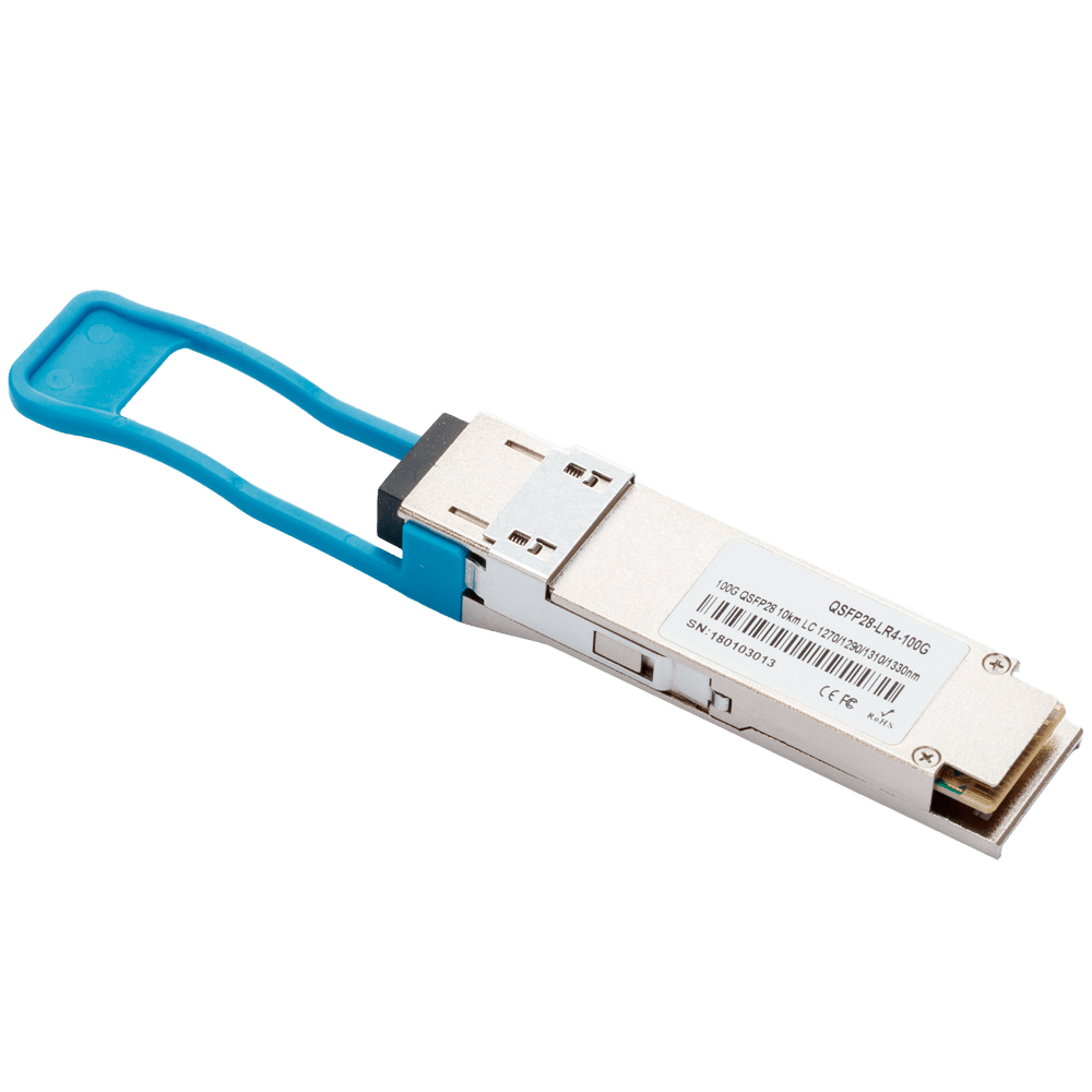 Módulo transcetor QSFP28 – Comprimento de onda 1310 nm – Fibra monomodo – Conector LC duplex – Distância máxima 10 km – 100Gbps – 100GBASE-LR4
