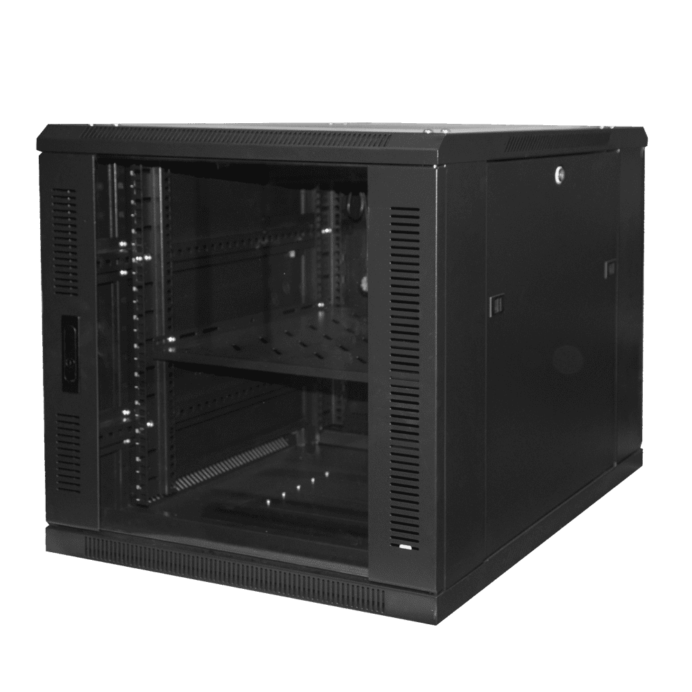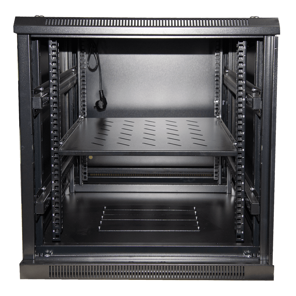 Armário rack para chão – Até 12U rack de 19″(600*800) – Até 800 Kg de carga – Com ventilação e guarnições para cabos – 4 ventiladores, 1 tabuleiros e extensão 6 tomadas – É vendido desmontado