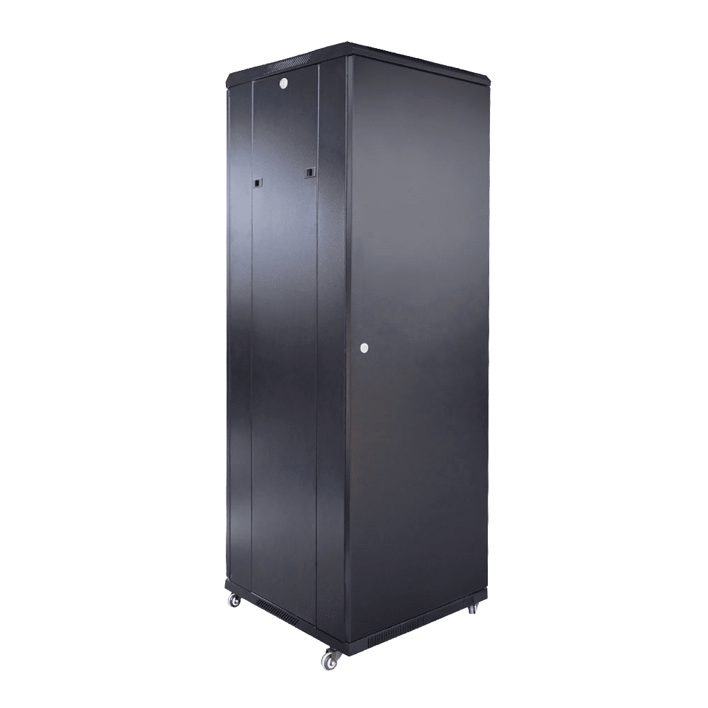 Armário rack para chão – Até 37U rack de 19″(600*600) – Até 800 Kg de carga – Com ventilação e guarnições para cabos – 2 ventiladores, 2 tabuleiros e PDUs 6 tomadas – Fornecido montado