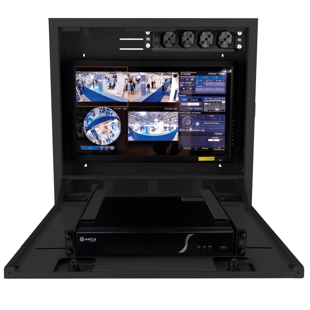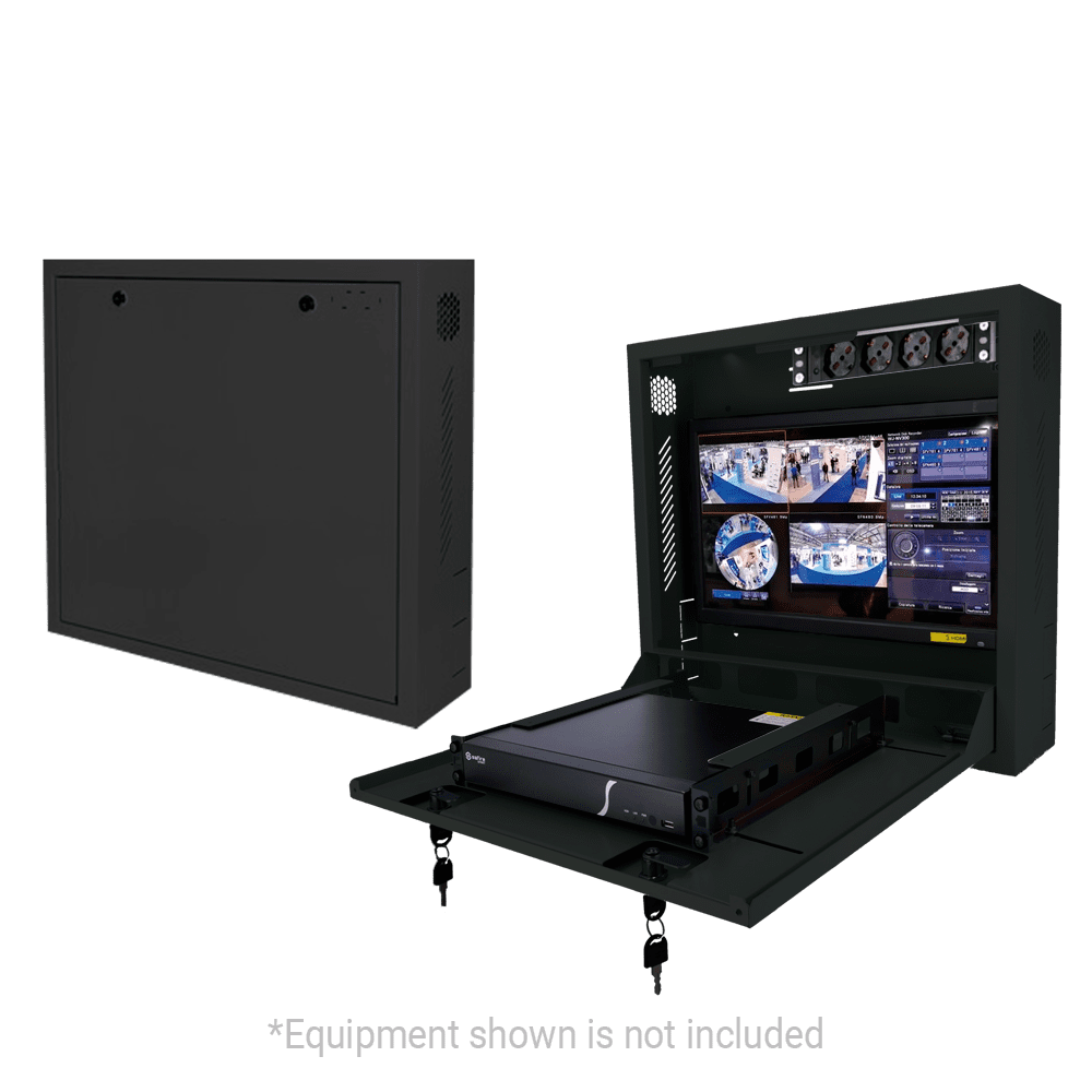 Cofres de segurança – Especial para instalação na parede – Formato vertical – 2 chaves e fechaduras – Entradas laterais para cablagem – Furos para monitor VESA