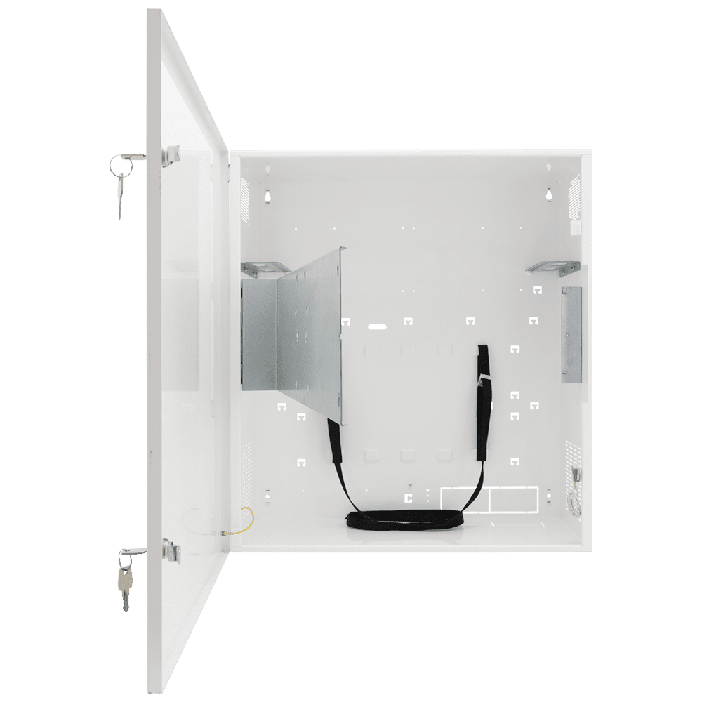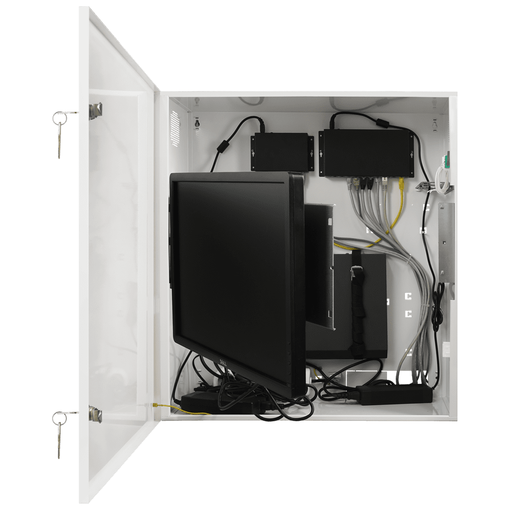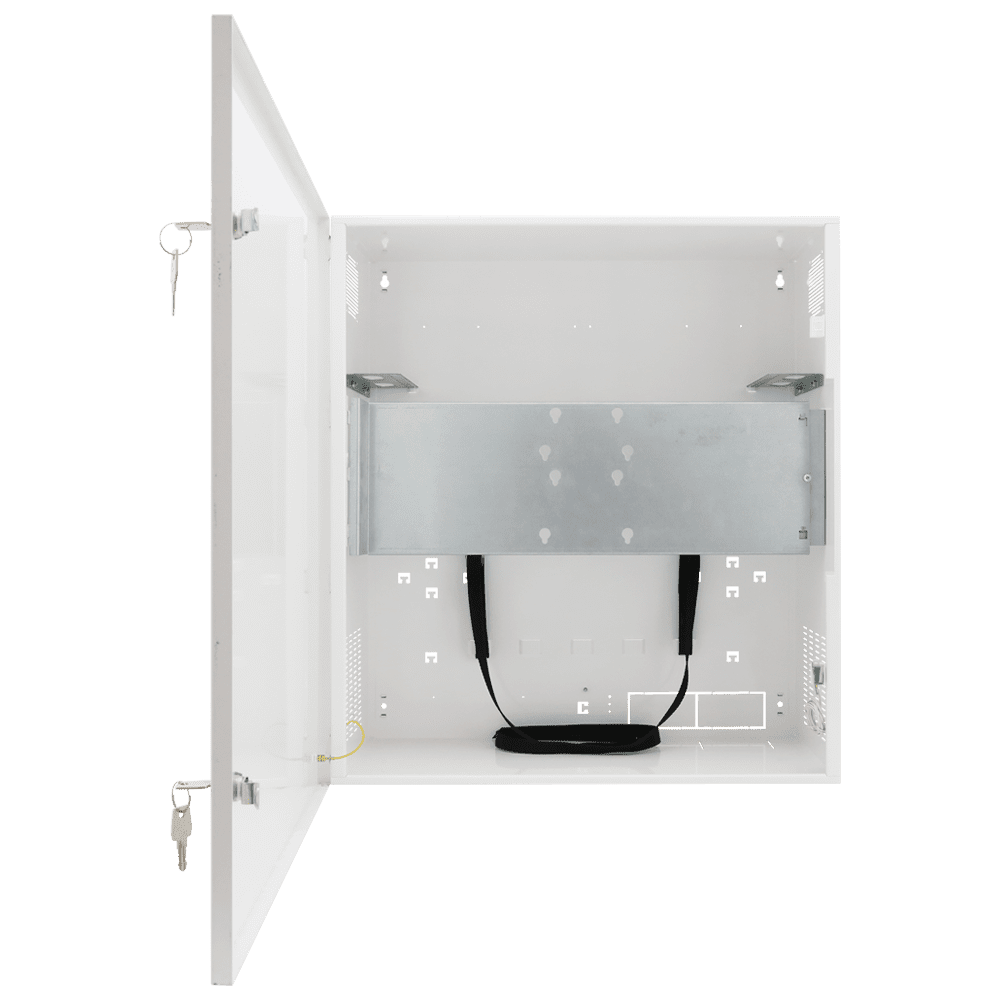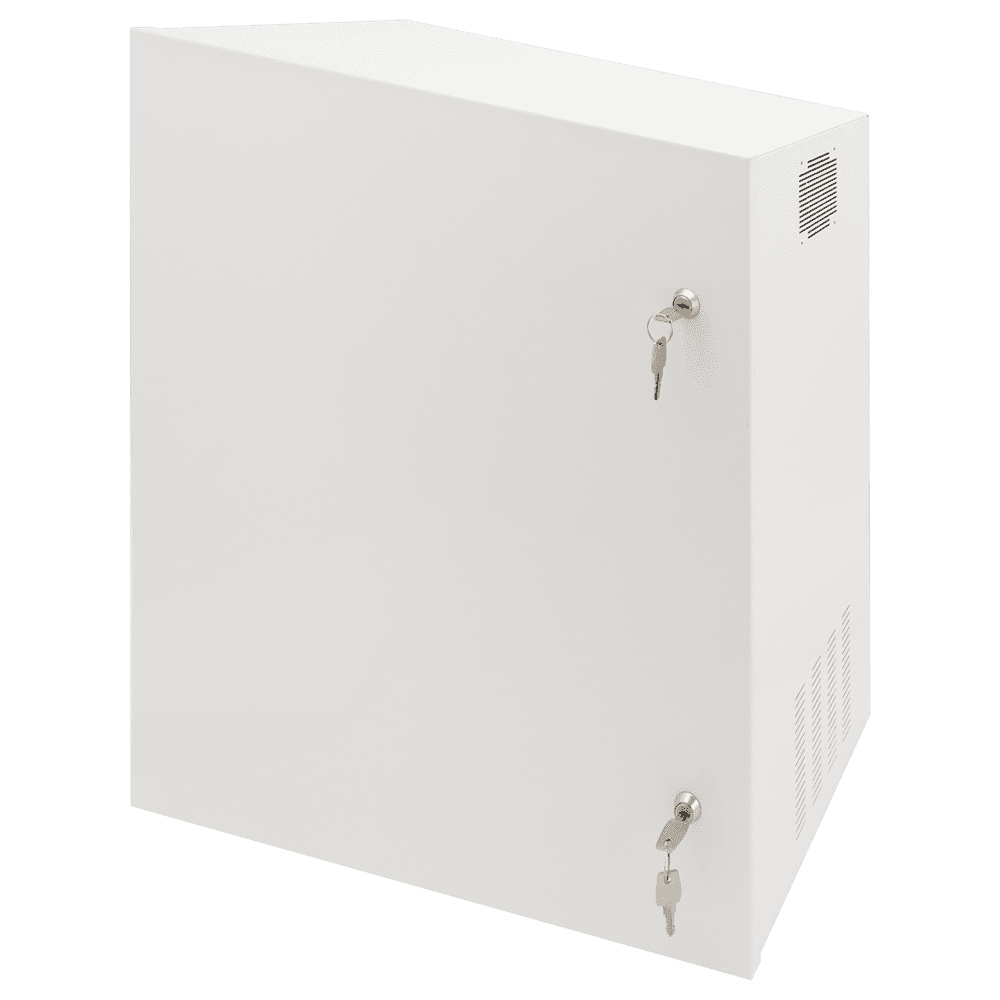 Cofres de segurança – Especial para instalação na parede – Formato vertical – 2 chaves e fechaduras – Entradas para cablagem – Para monitor, Switches POE, Gravador e Rack 19´.