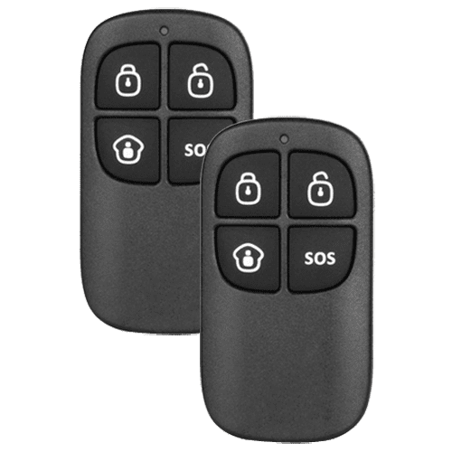 2 Comandos à distância multifunção – Sem fios – Armado, armado silencioso e parcial – Desarmado – Botão SOS (pânico) – Indicador LED
