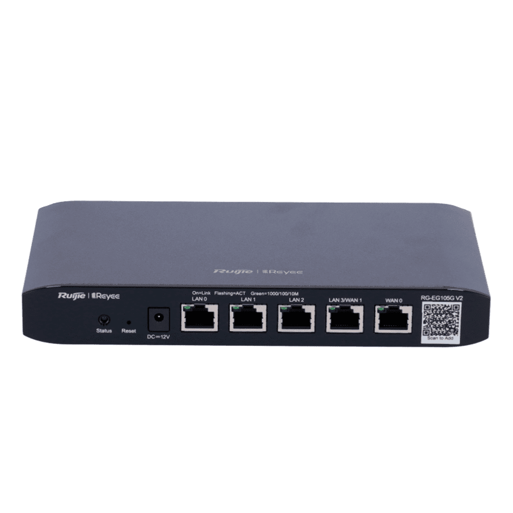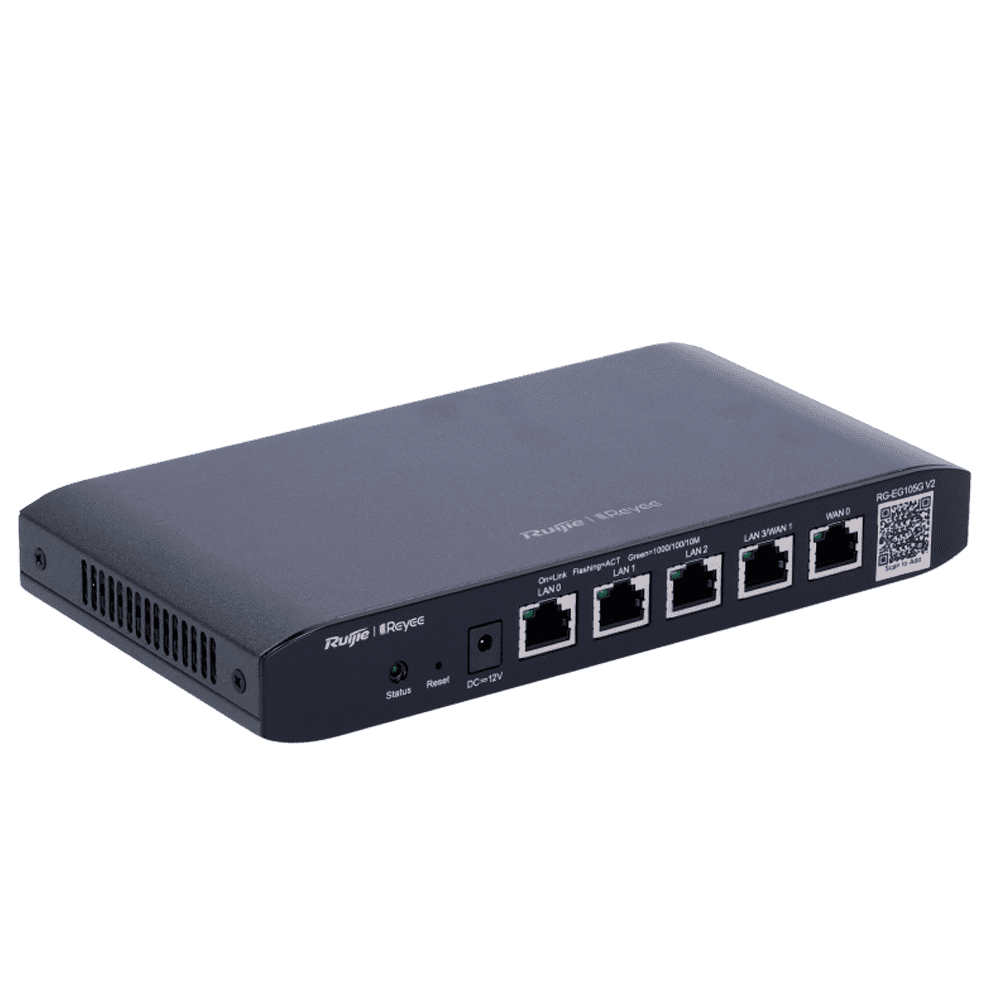 Reyee Router Controlador Cloud – 5 Portas RJ45 10/100 /1000 Mbps – Suporta até 2 WAN para failover ou balanceamento – Até 600Mbps largura de banda – Servidor VPN IPSec, L2TP, PPTP, OpenVPN – Controlo Inteligente da Largura de Banda