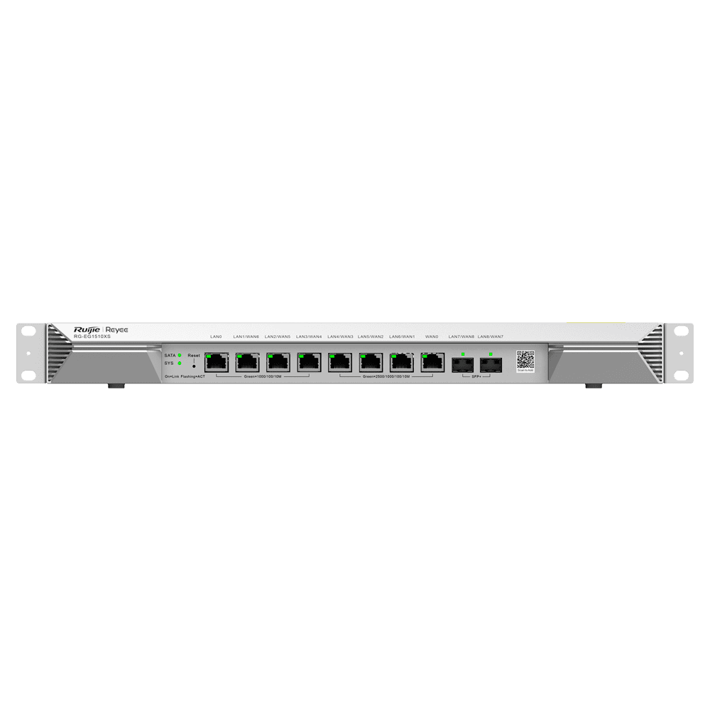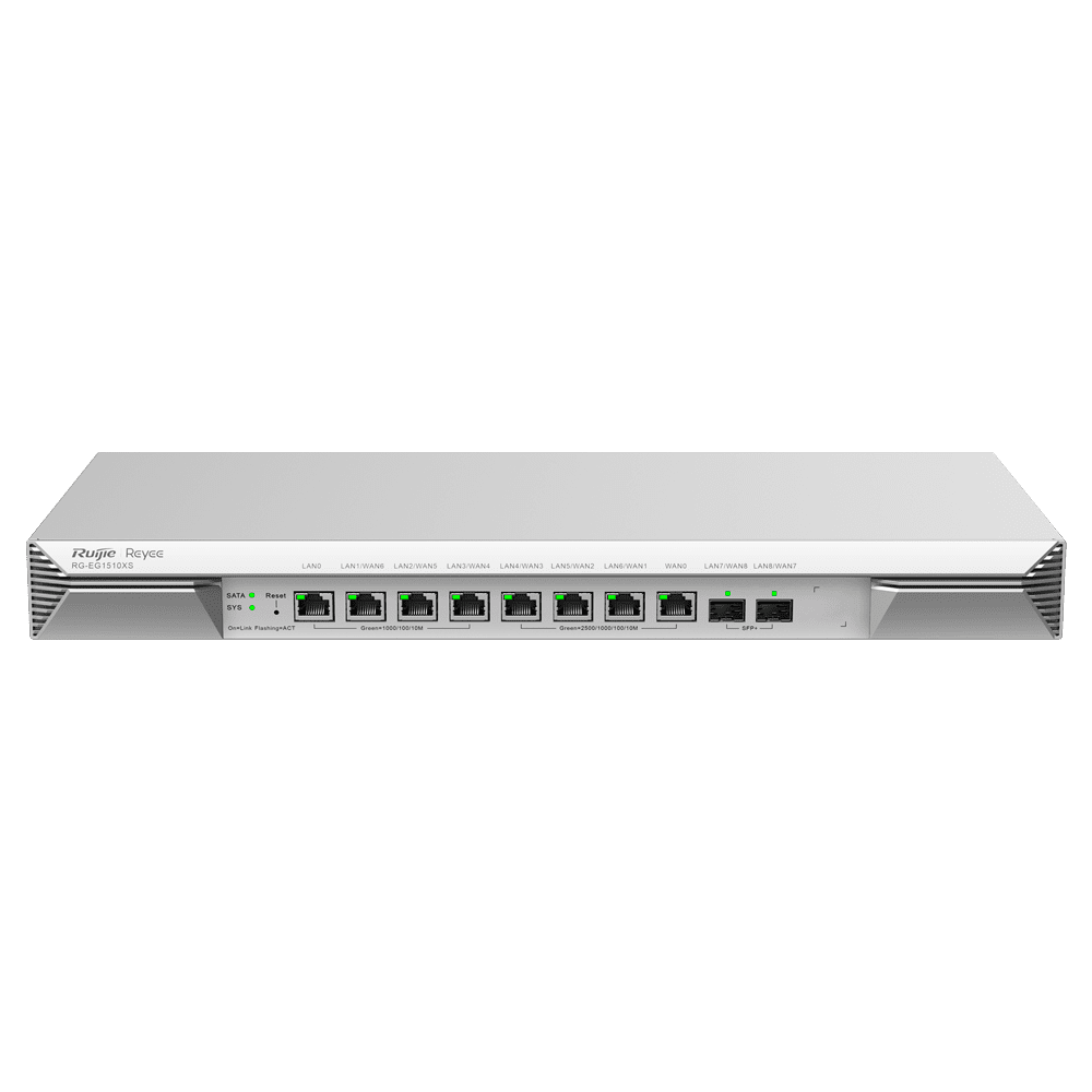 Reyee Router Cloud – 8 Portas RJ45 + 2 SFP+ 10Gigabit – Funções básicas da firewall – Suporta até 7 WAN para failover ou balanceamento – Até 4000 Mbps de largura de banda – Até 1500 utilizadores recomendados