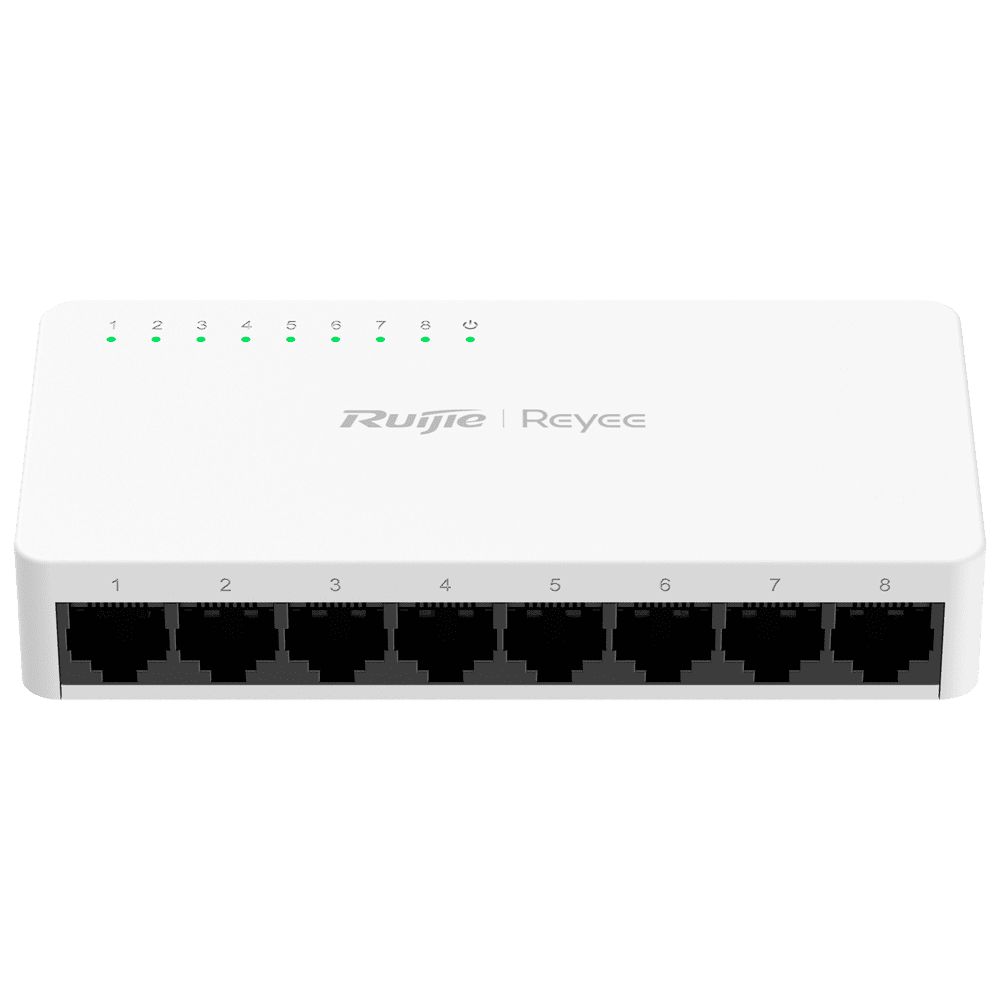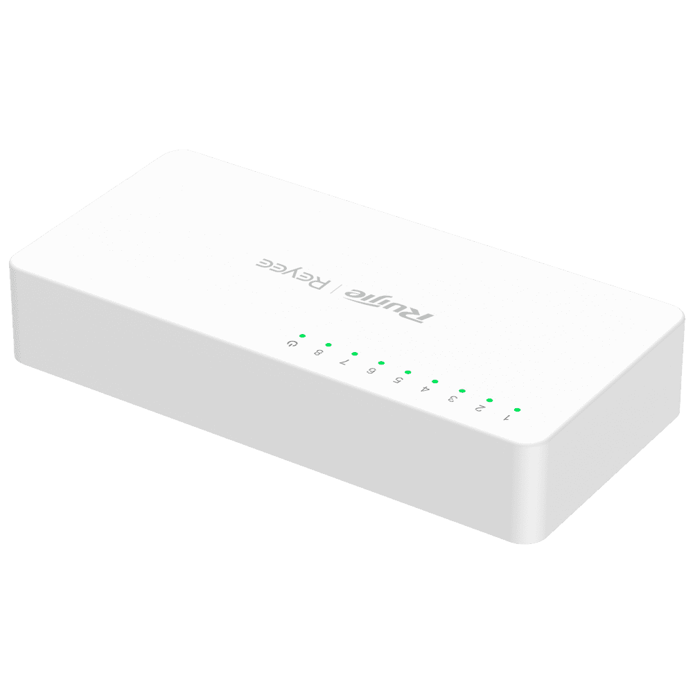 Reyee Switch Desktop – Caixa plástica – 8 portas RJ45 – Velocidade 10/100 Mbps – Plug and Play – Tecnologia poupança de energia