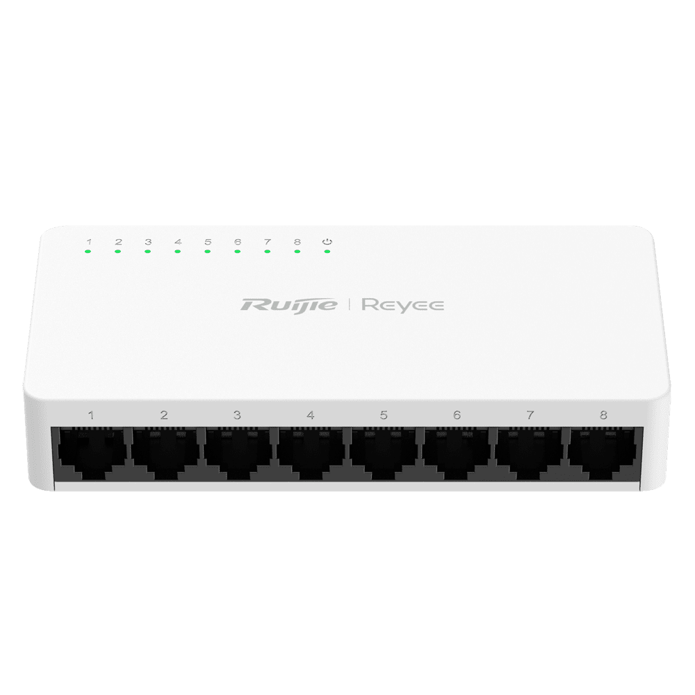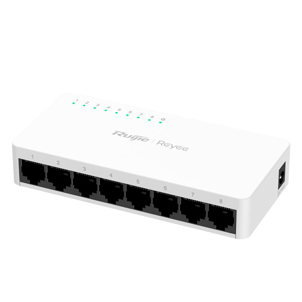Reyee Switch Desktop – Caixa plástica – 8 portas RJ45 – Velocidade 10/100/1000 Mbps – Plug and Play – Tecnologia poupança de energia