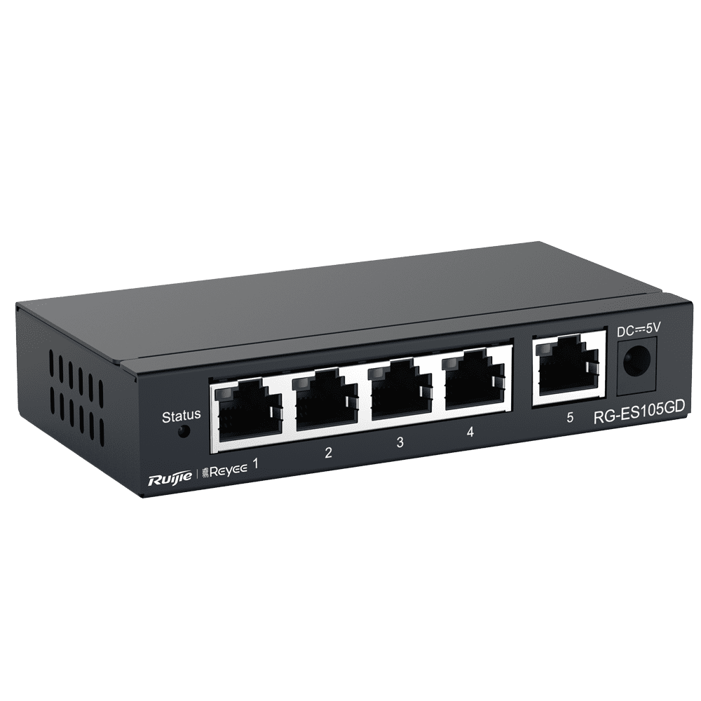 Reyee Switch Desktop – Caixa metálica – 5 portas RJ45 – Velocidade 10/100/1000 Mbps – Plug and Play – Tecnologia poupança de energia