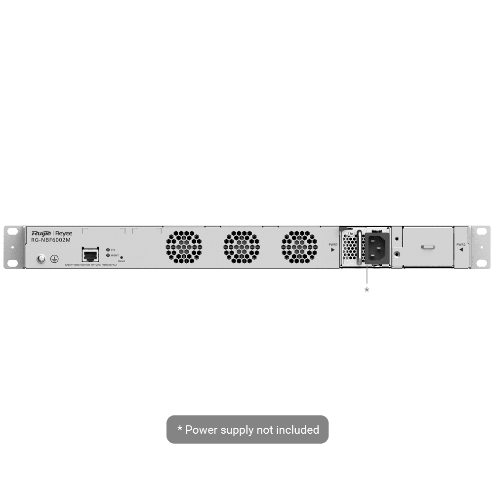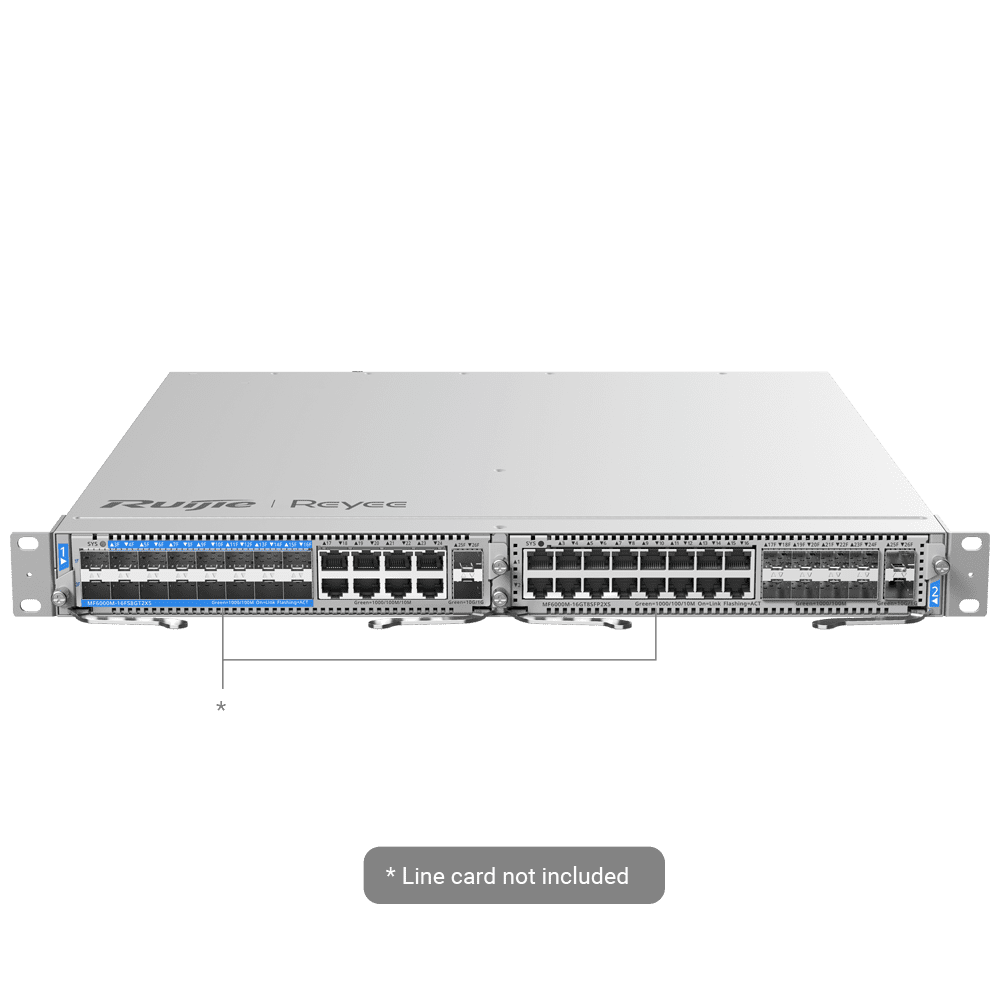 | Interfaces | Até 48 portas RJ45 10/100/1000 Até 16 Portas E-Lighten SFP 1G (as PONs podem ser utilizadas para divisão passiva e como portas Ethernet SFP ) Até 16 Portas SFP Até 4 Portas 10 Gbps SFP+ Uplink *É necessária a compra de um ou mais cartões RG-MF6000M e, consoante os cartões escolhidos, as interfaces podem variar |