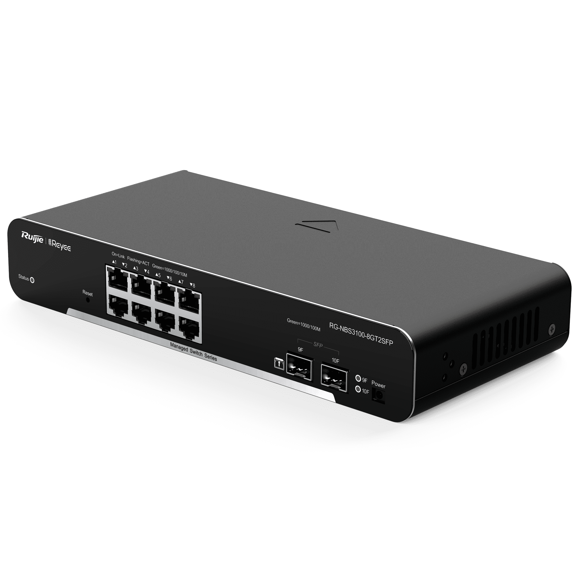 Reyee Switch Cloud Capa 2 – 8 puertas Gigabit+ 2 SFP Gigabit – Velocidade 10/100/1000 Mbps – Static LAG/DHCP Snoop/IGMP Snoop/Port Mirror – VLAN/isolamento de porta/STP/RSTP/ACL/QoS/LACP/SNMP – Pode ser montado em rack