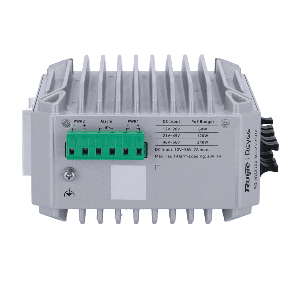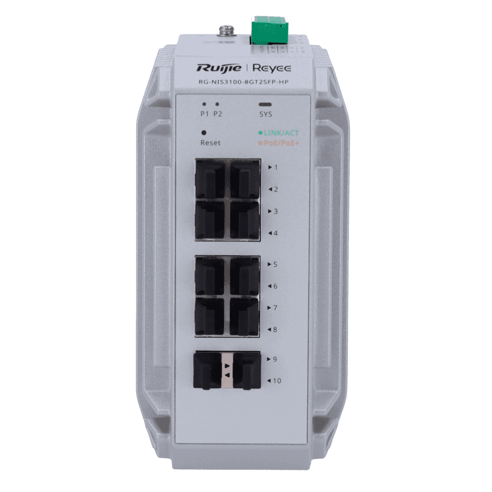 Reyee Switch Industrial PoE Cloud Capa 2 – 8 portas Gigabit PoE+ + 2 portas Gigabit SFP – 30W por porta 802.3af/at / Máximo 240W – Static LAG/DHCP Snoop/IGMP Snoop/Port Mirror – Prevenção de VLAN/Loop/STP/RSTP/ACL/Watchdog – Montagem em carril DIN