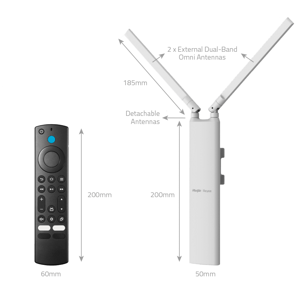 Reyee – AP Wi-Fi Omni-direccional 5 – Adequado para utilização no exterior IP65 Design compacto – Suporta 802.11a/b/g/n/ac Wave 2 – Taxa de transmissão até 1267 Mbps – Antenas amovíveis 2×2 MIMO