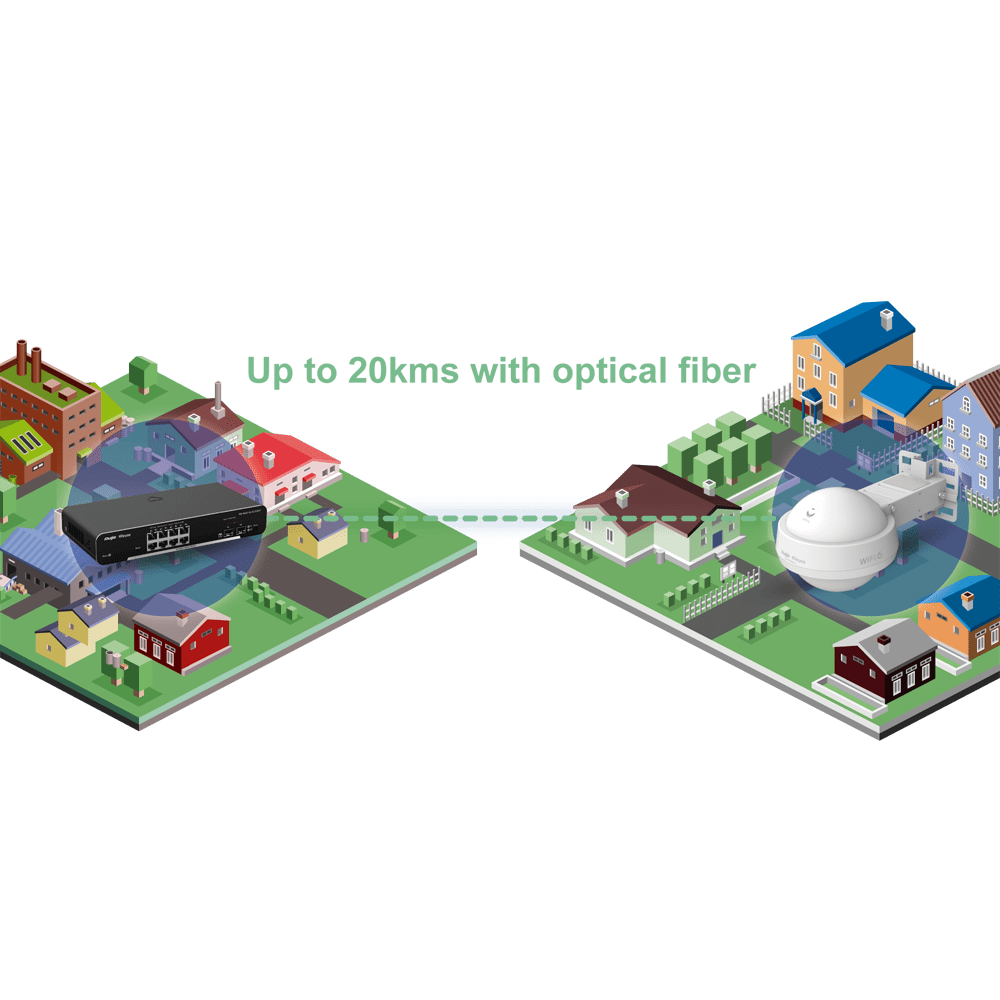 | Gestão | Configuração via interface web ou remotamente com o Ruijie cloud app |