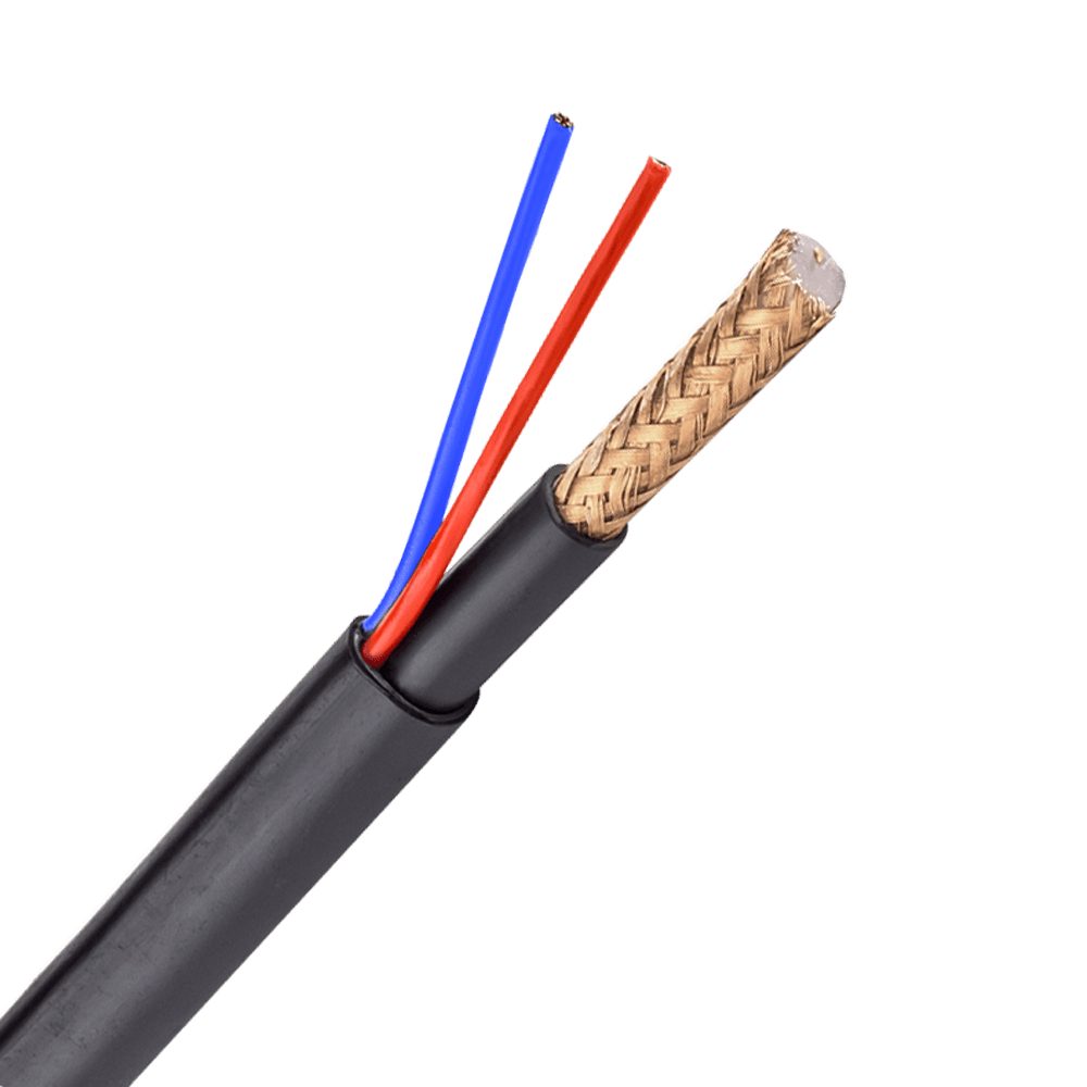 Cabo Combinado – Micro RG59 + alimentação – Bobine de 300 metros – Revestimento cor negra – Diâmetro exterior 6.8 mm – Capa exterior LSZH
