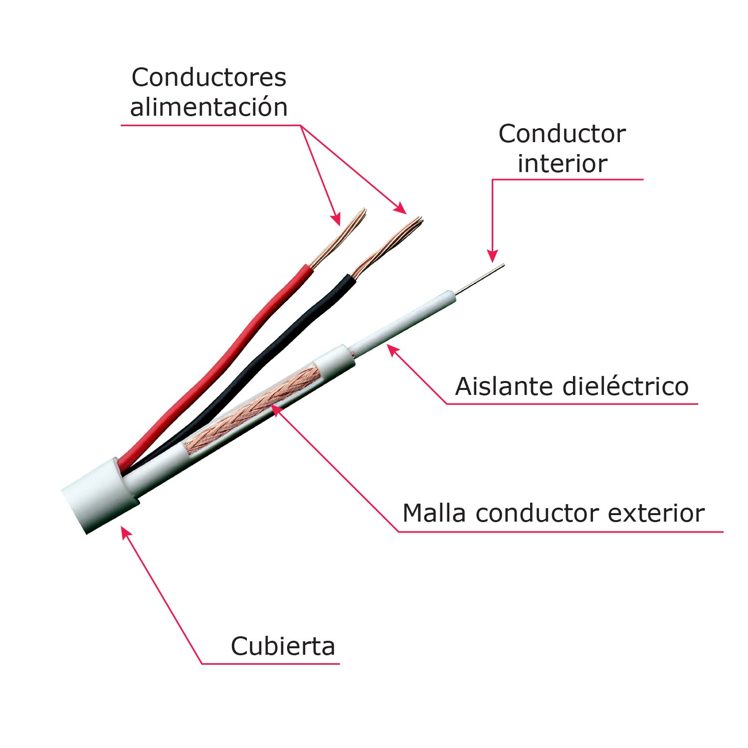 Cabo Combinado – Micro RG59 + alimentação – Bobine de 300 metros – Cobertura de cor branca – Diâmetro exterior 6.8 mm – Mínima perda