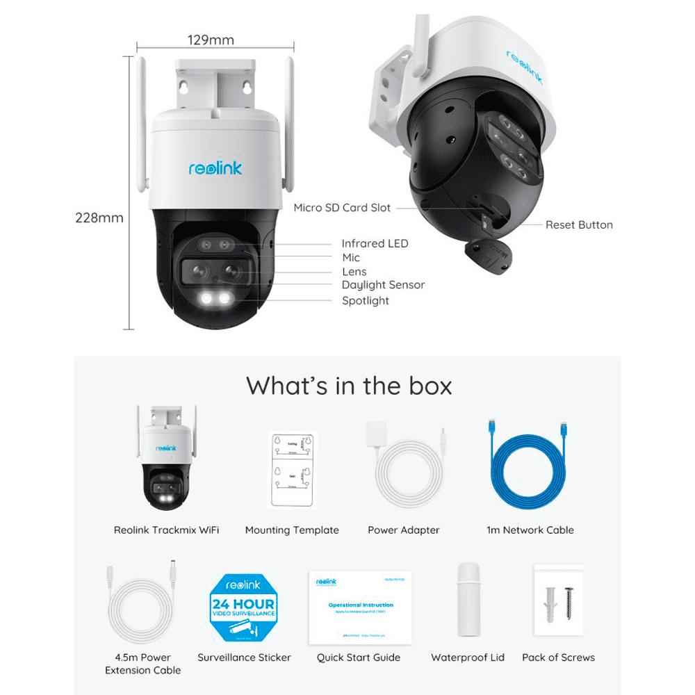 Reolink Câmara Lente Dupla a Bateria – 8MP (3840 x 2160) / WiFi Dual – IV 30 m / Modo Cor Noturno – Deteção PIR Humanos / Veículos / Animais de estimação – Seguimento e zoom automáticos – Apta para exterior
