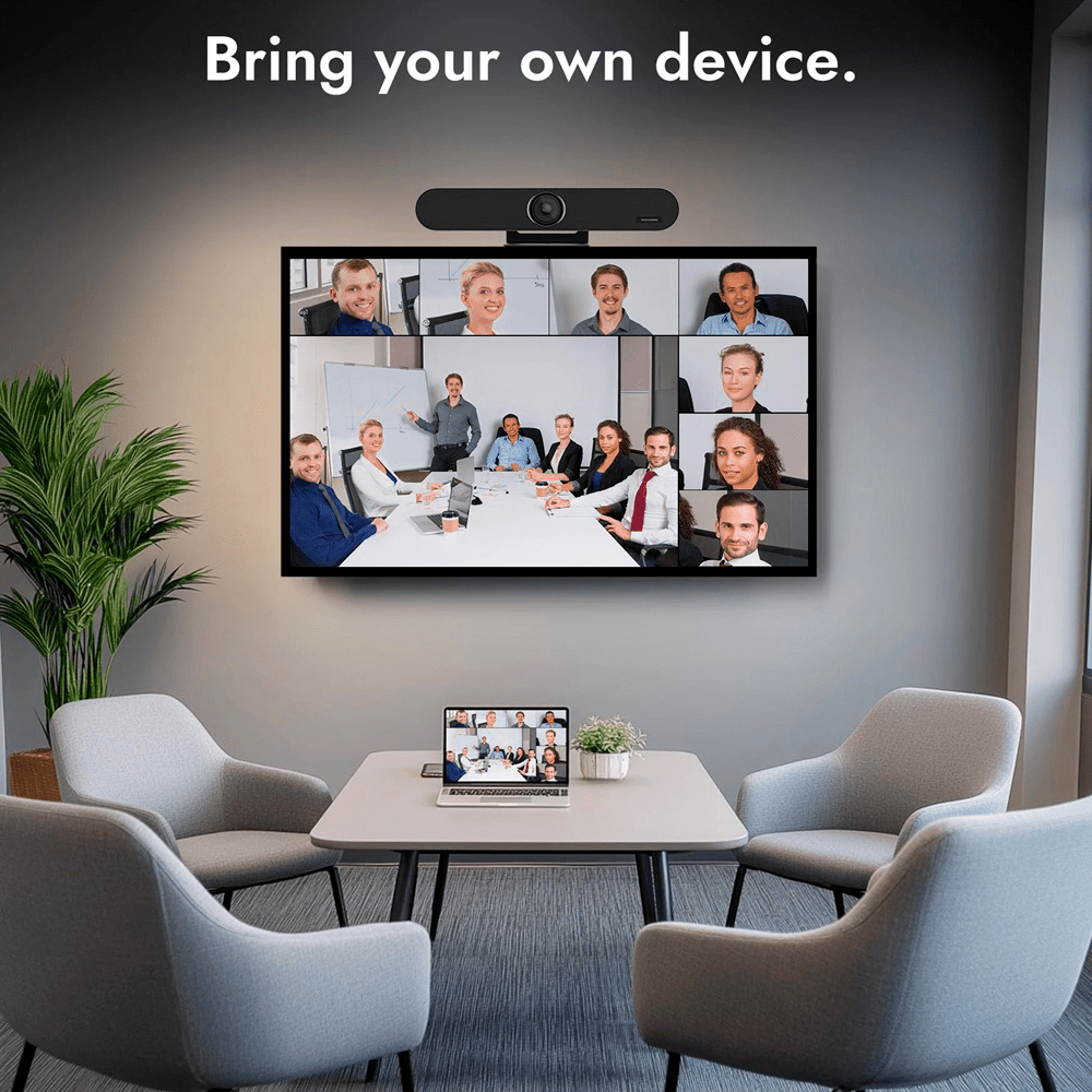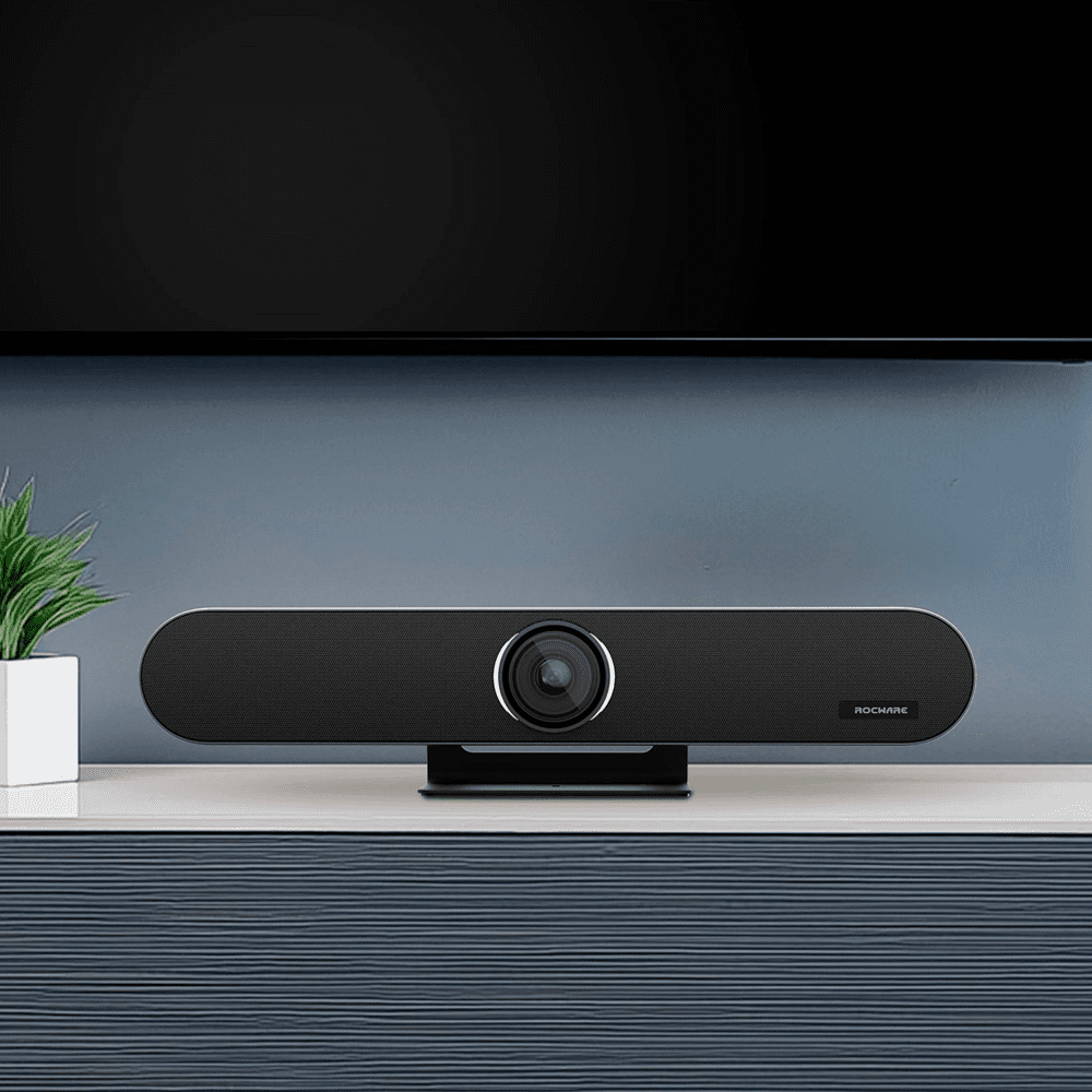 Barra de videoconferência All in One – Resolução 4K – Ângulo de visão 120° – Microfones e altifalantes integrados – Inclui botão de transmissão – Plug & Play