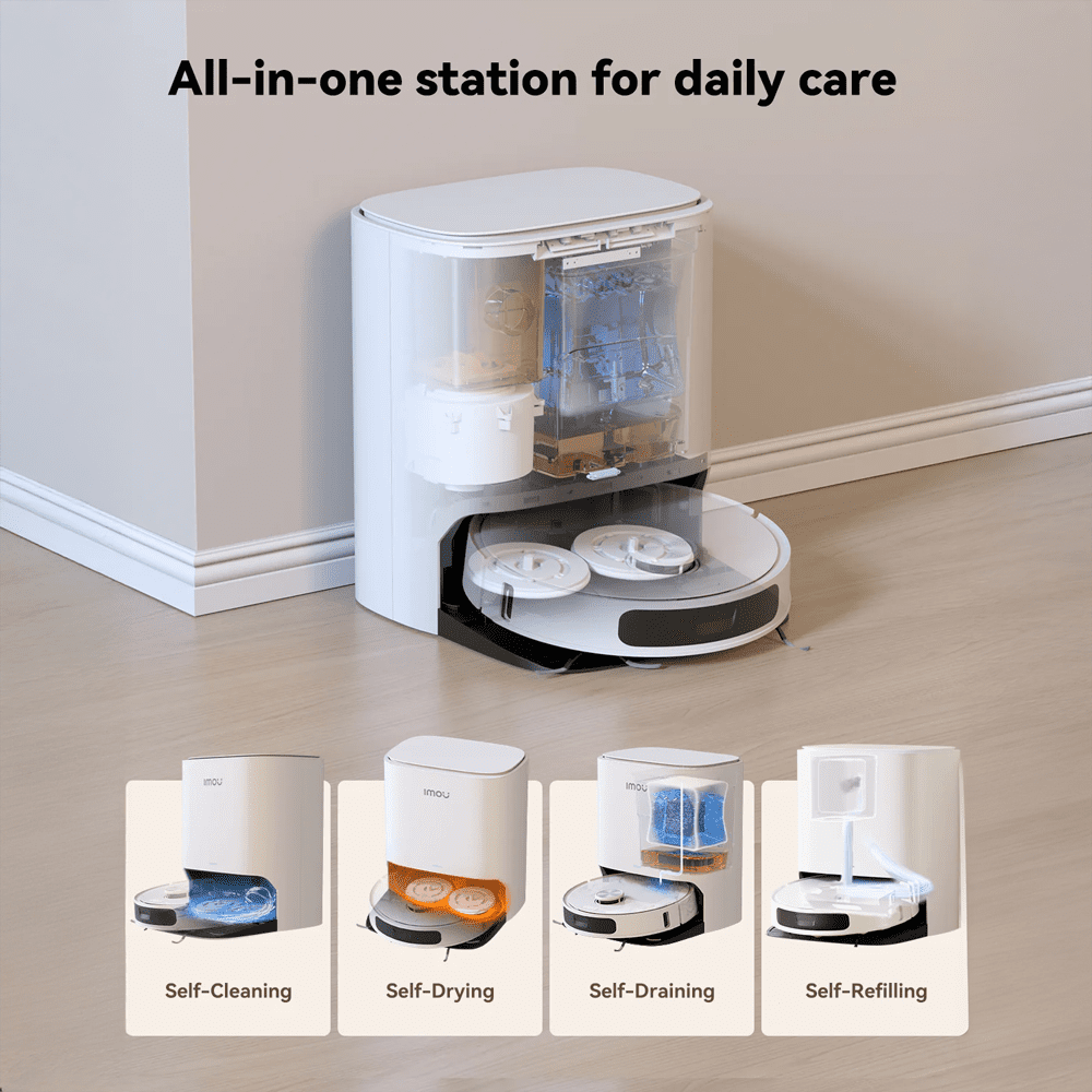 Imou Robot Aspirador RV3 – 8500Pa / 6400 mAh – Varrer, aspirar e passar a esfregona – Autolimpeza – Estação de carregamento – Gerir a partir da aplicação