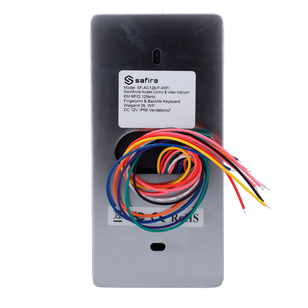 Controlo de acesso autónomo com videoporteiro – Acesso por impressão digital, cartão EM, PIN e APP – Saída de relé e botão pulsador – Wiegand 26 e WiFi | Controlo de tempos – Tuya Smart APP para gestão remota e aberturas – Apto para exterior IP66