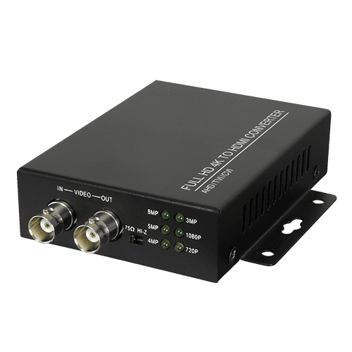 Convertidor BNC a HDMI – 1 entrada BNC – 1 saída HDMI 1080p – 1 saída BNC (loop com BNC in) – Resolução de saída 1080p – Resolução de entrada de vídeo até 8 Mpx
