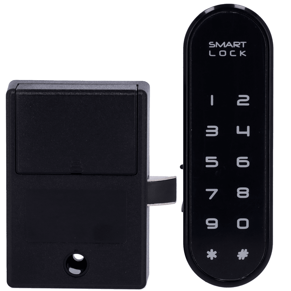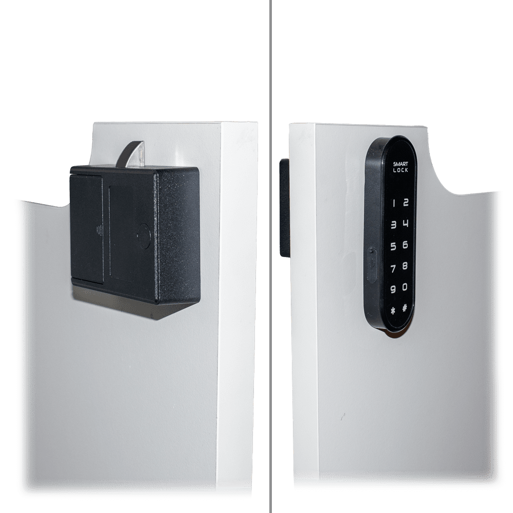 Fechadura inteligente para cacifos – Identificação da palavra-passe – Fonte de alimentação 3 x AAA – Modo público: aberturas de utilizadores aleatórios – Chave mestra para abertura de emergência – Gestão autónoma (sem software)