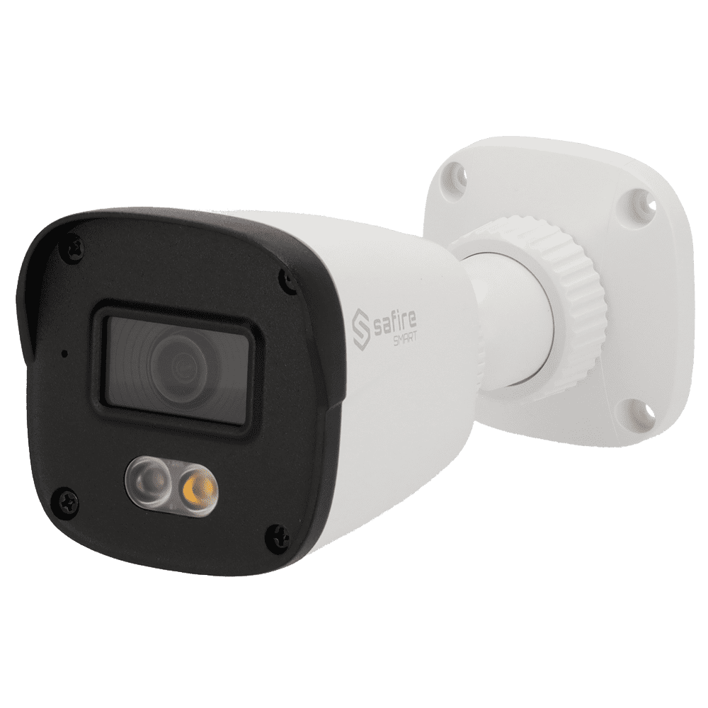 Safire Smart – Câmara Bullet IP da gama B1 – Resolução 4 Megapixel (2566×1440) – Lente 2.8 mm | Deteção avançada de movimento – Luz dupla: IR + Alcance de brancos 20 m | Microfone – Impermeabilidade IP67 | PoE (IEEE802.3af)