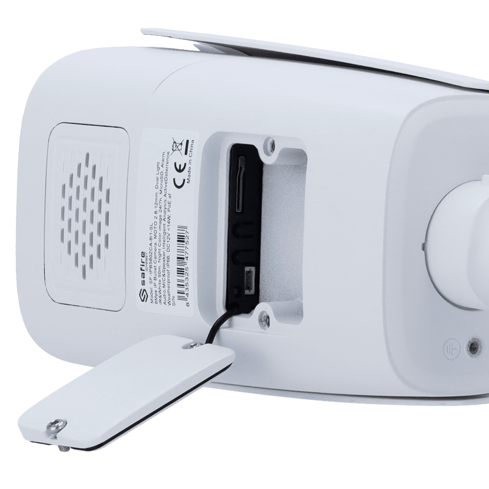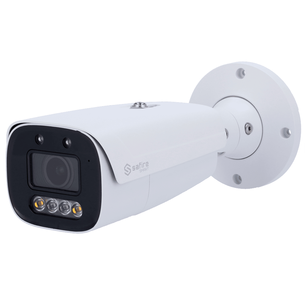 Safire Smart – Gama de câmaras IP bullet I1 com dissuasão ativa – Resolução 4 Megapixel (2566×1440) – Lente 2.8-12 mm | MIC e altifalante | Duallight 40m – IA: Classificação de humano e veículo – Impermeabilidade IP67 | PoE (IEEE802.3af)