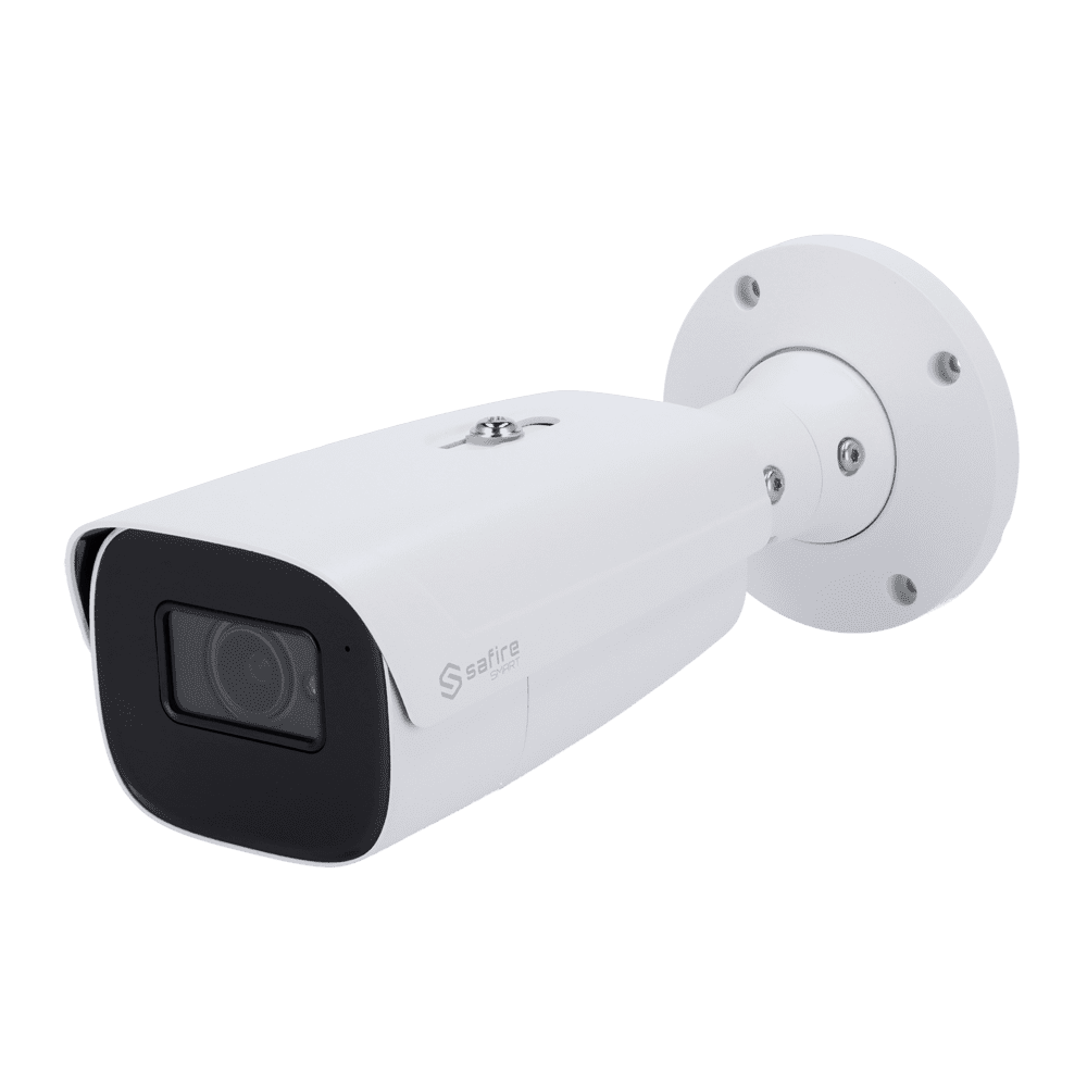 Safire Smart – Câmara IP bullet Gama I1 AI Avançado – Resolução 4 Megapixel (2592×1520) – Lente Motorizada 2.8-12 mm | Audio | IR 70m – IA avançada:Perímetro, Facial, Contagem, Metadados – Impermeabilização IP67 | PoE (IEEE802.3af) |Alarme