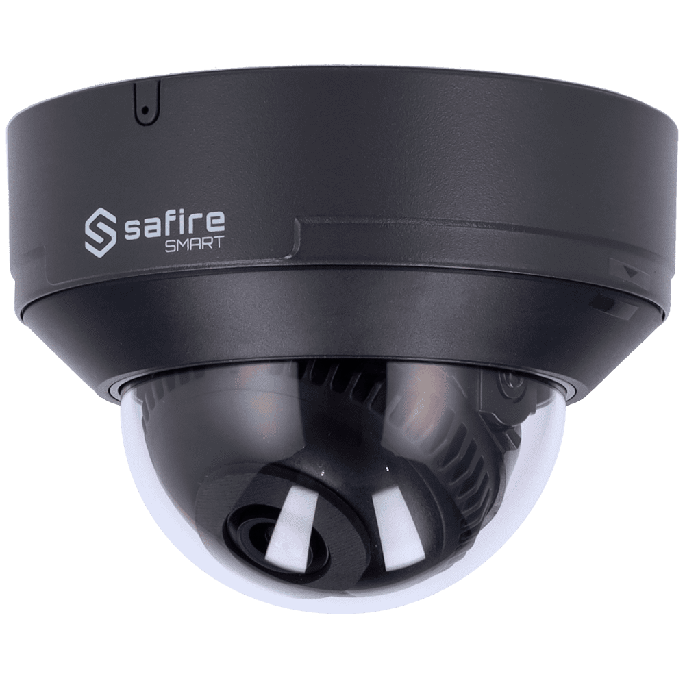 Safire Smart – Gama de câmaras de dome IP E1 Inteligência Artificial – Resolução 4 Megapixel (2566×1440) – Lente 2.8 mm | Microfone incorporado | IR 30m – IA: Classificação de humano e veículo – Impermeabilização IP67 & IK10 | PoE (IEEE802.3af)