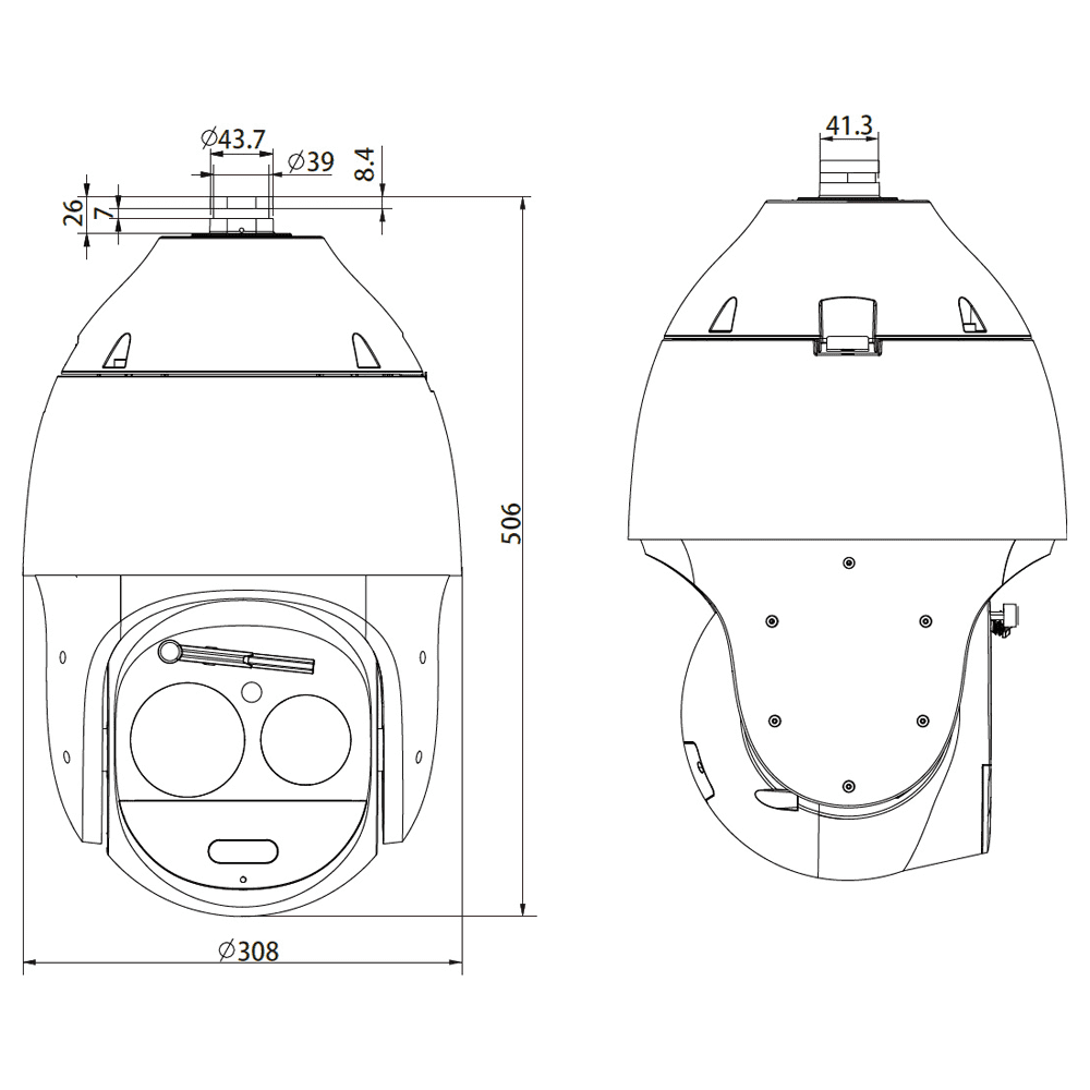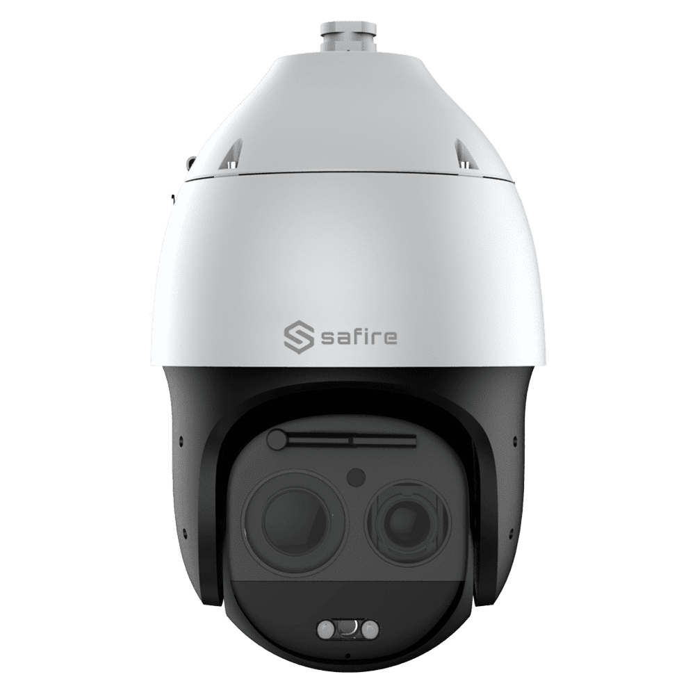 SAFIRE Dome motorizada – 1/1.8″ Progressive Scan CMOS – Zoom ótico 63X e iluminação laser até 500m – Seguimento automático | EIS (Estabilizador eletrónico de imagem) – Inteligência artificial e dissuasão ativa – Plugin gratuito compatível com ONVIF