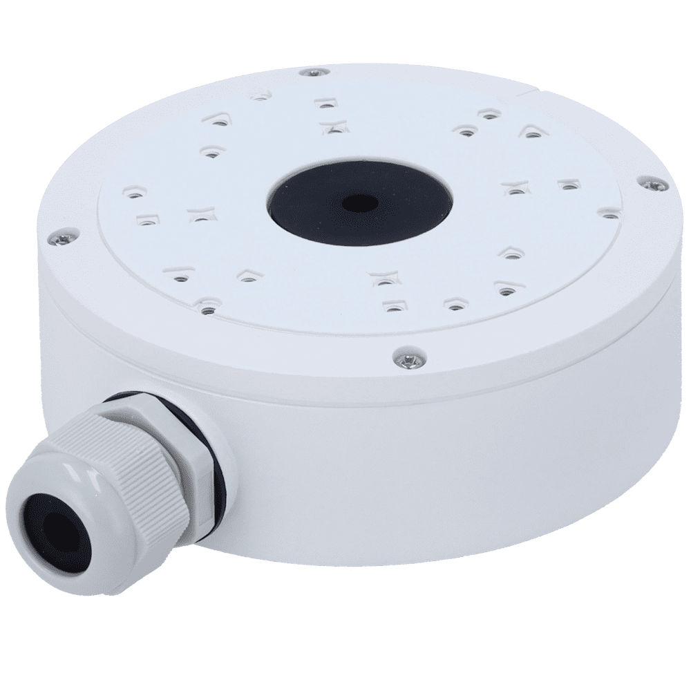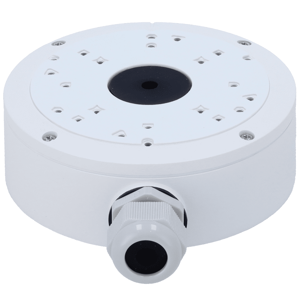 Caixa de derivação Safire Smart – Para câmaras dome – Apto para uso exterior IP66 – Instalação em tecto ou parede – 50 (H) x 139.3 (Ø) x 171.6 (Fo) mm – Passador de cabos